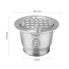 Product Description If you have any questions, please contact customer service first, do not open disputes easily, thank you! Feature: 1. Reusable, save money and save the earth. 2. Brew your own fresh coffee and make a difference in your life. 3. Safe to use, made of food grade 304 steel, BPA free, lead free. 4. Easy to use, fill the capsule with coffee powder and put it in the machine, then you can enjoy a cup of espresso Specification: Material: food grade stainless steel 304 material + food grade silicone ring Product size: top caliber about 36.7MM, bottom caliber about 23MM, height about 26.9MM Product net weight: about 0.08KG/PCS Features: Can be used for a long time, rich in coffee grease. Drop-resistant, environmental protection, saving, can use their favorite coffee powder, rich taste. Compatible for Nespresso models: For Nespresso U. For CitiZ ( Not Fit for D110 and Prodigio Krups ). For Pixie. For Le Cube. For Maestria. For Lattissima. For Inissia. For Concept. For Essenza Not compatible for Dolce Gusto Package Includes: 1* Hardware capsule 1*Spoon 1*Brush About Us We accept all payments authorized by eBay. powered by