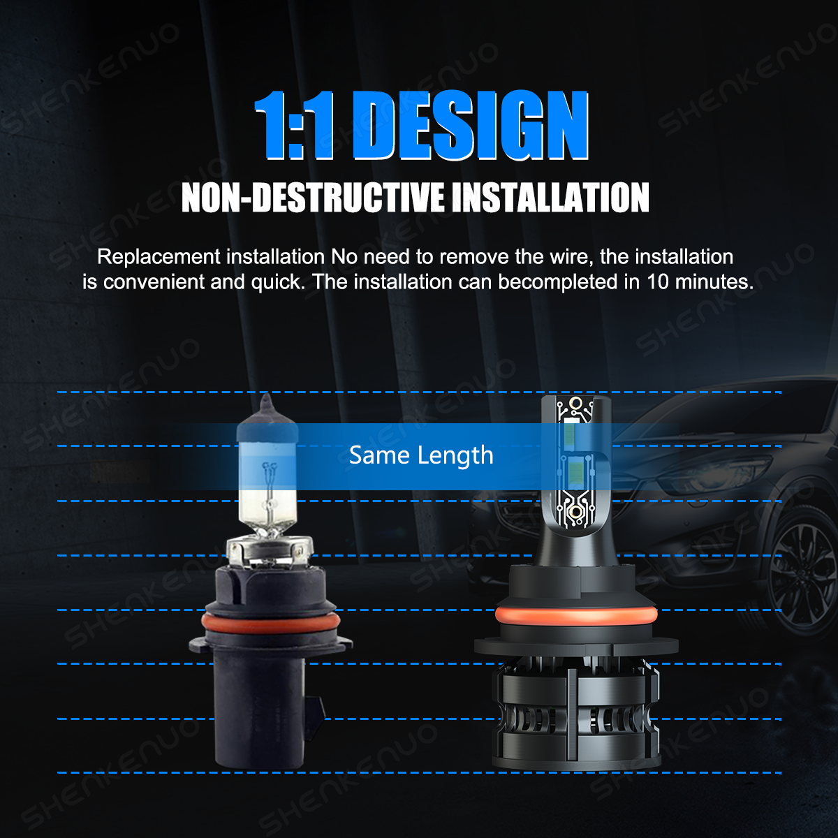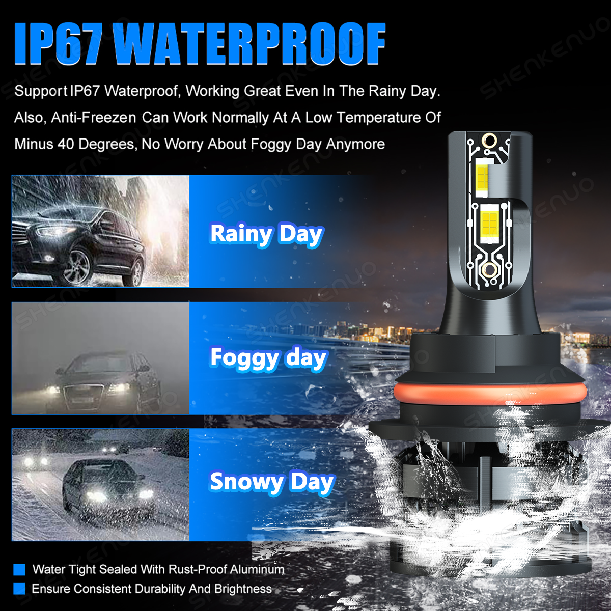 Key Features: 1. Designed to enhance your visibility and driving safety at night and bad weather. 2. Latest 2-side CSP 3570 LED light source, super bright without blind zone. 3. Efficient cooling system ensures maximum headlight performance and appropriate working temperature. 4. Built-in smart IC chip provides intelligent temperature control and allows for instant start. 5. IP67 waterproof and high temperature resistant, withstand extreme weather conditions. 6. Easy installation without any modification or additional wiring, plug and play. Compatible Models and Years: - Universal for most vehicles on the market like SUV, bus, truck, sedan, pickup, sport utility etc. Specifications(Headlight): * Brand: SHENKENUO * Condition: 100% Brand New * Light Source:2 Sides CSP 3570 LEDs * Material: Aviation Aluminum + ABS * Color Temperature: 6000K * Working Voltage: 12V * Output Power: 80W * Number of Bulbs: 4 * Waterproof Rate: IP67 * Working Temperature: -40℃ - +150℃ * Bulb Type: 9007+H11/H8 * Beam Type: High Beam/ Low Beam+Fog llight * Beam Angle: 360 Degrees * Lifespan: Over 50,000 hours * Heat Dissipation Principle: Heat Pipe Technology + Aluminum Radiator * Fitment Type: Direct Replacement * Placement on Vehicle: Front, Left, Right Parcel Content: - 2 * 2-side 9007 LED Headlight Bulbs - 2 * 2-side H11/H8 LED Fog light Bulbs New and old packaging will be shipped randomly Installation Notes: 1.As a safety precaution, make sure that the car has had time to cool down properly before starting the installation process. 2. Put the vehicle into park or make sure it is securely in gear. 3. Make sure to have the ignition turned off and the keys removed. 4. Be careful to avoid burns, especially when turning on or off the vehicles lighting. 5. Be careful to avoid crushing or cutting the bulbs. Also make sure to not touch the bulbs with your fingers, as this will cause blotting. 6. Fully examine the connection of the contact points, ports and the wires as faulty connections can cause lighting problems. 7. Make certain that the end of the bulb does not come in contact with the interior light shield of the headlight when adjusting the bulb. 8.Please install car headlight dust cover to ensure the normal operation of the lamp 9. Please check the size of your bulbs on your vehicle before purchasing. 10. Please make sure the headlight housing has enough space for installation before purchasing. 11. Professional installation is highly recommended. If you have any questions, please feel free to contact us. Information: If you are unsure the item fit or not , please do remember send message to tell us your car make, model, year and other information which is helpful to check the item fit or not. For example: FOR 2004 Ford F-150, high/low beam EOR 2015 RAM 1500 with projector-type, high beam FOR 2019 Ford F-150 ,XL Crew Cab Pickup 4-Door 2.7L On Jun 17, 2025 at 23:26:25 PDT, seller added the following information: