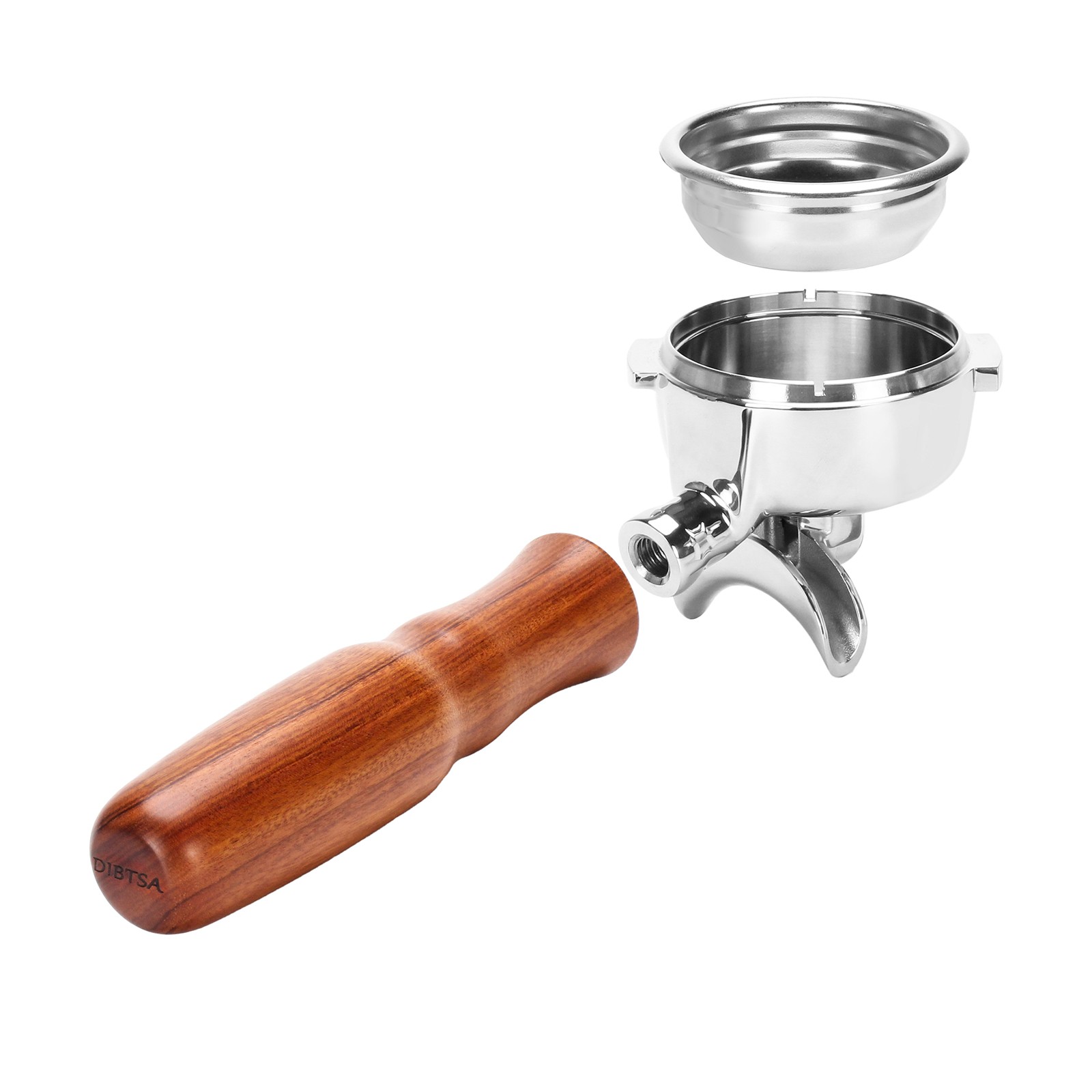 For Nuova Simonelli 58mm Portafilter Double Spouts Espresso Knock Box Non-Slip 58mm Coffee Portafilter --FIT MODELS: this 58mm espresso portafilter is compatible with Nuova Simonelli Aurelia,Nuova Simonelli Appia.,Nuova Simonelli Oscar, Nuova Simonelli Musica.,Nuova Simonelli Premier Maxi,Nuova Simonelli Mac 2000,Nuova Simonelli Program VIP --PORTAFILTER WITH SPLIT SPOUTS: This coffee portafilter is design with double spouts, which allows you to make two espresso cups at the same time without coffee residue. Perfect for use at cafe or home which with many members, can improve the efficiency of coffee making --304 STAINLESS STEEL PORTAFILTER BASKET: This 58mm portafilter filter basket is made of food-grade 304 stainless steel, its exceptional resistance to oxidation, corrosion, and rust, which ensures that your coffee stays free from any unwanted impurities.The filter basket and wood handle of this portafilter can be disassemble, convenience to clean. Coffee Knock Box --Large Capacity: Our dibtsa knock box holds up to around 2.6 liters of used coffee ground before it needs to be emptied, is the ideal size for a large espresso station --Two In One Design: This espresso puck knock box is composed of a wooden base and a stainless steel espresso pucks container, which makes the whole coffee grounds bucket more stable when you knocking the espresso pucks --Anti-slip Pads: The bottom has four round rubber anti-slide disc that keeps it firmly in place. So as you're knocking out your used grinds, there is no chance of sliding --Rubber Knock Bar: The knock bar has a covering of rubber, and the bar fix snugly into the box, it can protect your portafilter when you knock out the coffee pucks Type: 58mm Portafilter Portafilter Material: Stainless Steel+ Solid Wood Handle Espresso Dosing Funnel Material: Aluminum Alloy Color: Silver Size: 58mm Package: 1 Pc 58mm Portafilter+Espresso Knock Box