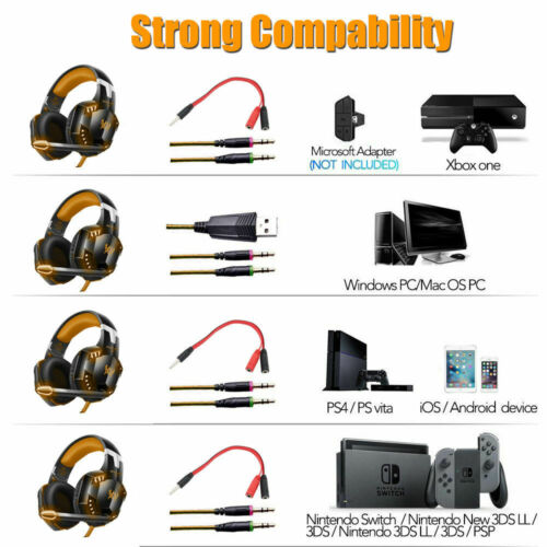 You may also like 4/8/12pc Solar LED Bright Deck Lights Outdoor Garden Patio Railing Path Lighting 10.79 USD Free shipping 1-3 pcs 300W Eq. 144-Chip Corn Bulb LED Light E26 3000lm Cool Daylight 6000K 11.99 USD Free shipping Heavy Duty Pull Up Bar For Doorway Home Gym Exercise Fitness Adjustable 29-38'' 39.89 USD Free shipping Speed MTB 26" Front Suspension Mountain Bike Bicycle Cycling Disc Brakes Unisex 179.99 USD 197.79 USD Free shipping 9% off Soft Male Masturbators Dildo Realistic Vagina Anal Pussy Masturbation Man Couple 0.99 USD 2.99 USD Car Windshield Phone Mount Cradle Holder Stand For Mobile GPS iPhone 12 Samsung 1.54 USD Free shipping Product Description For PS5 PS4 3.5mm Gaming Headset Xbox one Headphone with RGB Surround Sound Mic Product Description FEATURES: High precision 50mm magnetic neodymium driver, bring you vivid sound field, sound clarity, sound shock feeling, capable of various games. Splendid ambient noise isolation. Earmuffs used with skin-friendly leather material, and super soft Over-ear pads that is more comfortable for long time wear. Glaring LED lights are designed on the earcups and microphone, highlighting the atmosphere of the game. Line is equipped with a rotary volume controller, one key Mic mute, more convenient to use. Braided wire, durable tensile effectively reduce the external resistance; Exquisite craftsmanship and fashion appearance. Professional gaming headset for your choice. Headphone size: Approx. 21 * 11.5 * 21.5cm / 8.3 * 4.5 * 8.5in Specifications: Type: Gaming Headset Driver diameter: 50mm Impedance: 32Ohm Sensitivity: 114dB +/- 3dB Frequency range: 20-20KHz Mic dimension: 6.0 * 5.0mm Mic sensitivity: -34dB +/- 3dB Mic impedance: 2.2kohm Directivity: Omnidirectional LED working voltage: DC5V +/- 5% Working current: Below 100mA Headset interface: 3.5mm stereo + USB Cable length: Approx. 2.2m / 7.22ft Headphone weight: 379g / 13.4oz Color: Orange Package Included: 1 x Pro Gaming Headphone Warm Tips: 1. The USB interface is used for LED light to highlight the atmosphere of the game. 2. Extra Microsoft adapter (Not Included) is needed when connecting with Old Version Xbox One controller. About Us Payment Shipping Terms Contact Us We are NOT selling products. We are selling SERVICES ! This is our philosophy in this ebay business. Our goal is to provide excellent before and after sales services to all our customers. We will much appreciate with fast payment ,thank you so much! 1. We ship from USA Stock . We will provide a tracking number after shipping. 2. We will process and ship the package within 1 business days. If you have any issue with the transaction, please contact us before leaving Negative feedback. We will respond and solve your issue ASAP. Please contact us via eBay Message .Thank you so much ! About Us We are NOT selling products. We are selling SERVICES ! This is our philosophy in this ebay business. Our goal is to provide excellent before and after sales services to all our customers. Payment We will much appreciate with fast payment ,thank you so much! Shipping 1. We ship from USA Stock . We will provide a tracking number after shipping. 2. We will process and ship the package within 1 business days. Terms If you have any issue with the transaction, please contact us before leaving Negative feedback. We will respond and solve your issue ASAP. Contact Us Please contact us via eBay Message .Thank you so much ! Bluetooth Car FM Transmitter MP3 Player Hands free Radio Adapter Kit USB Charger 7.99 USD 11.75 USD Free shipping 32% off High Pressure Power Washer Water Spray Gun Nozzle Wand Attachment Garden Hose 13.88 USD 22.75 USD Free shipping 39% off 3.5mm Gaming Headset Mic LED Headphones Stereo Bass Surround For PC PS4 Xbox ONE 20.95 USD 49.89 USD Free shipping 58% off Car Rear View Backup Camera Parking Reverse Back Up Camera Waterproof Wide 170° 9.99 USD 16.94 USD Free shipping 41% off 4 Pcs Plug-in LED Night Light Hallway Kitchen Bathroom Auto Sensor Control Lamp 6.99 USD 9.99 USD Free shipping 30% off Digital Chromatic LCD Clip-On Electric Tuner for Bass, Guitar, Ukulele, Violin 6.95 USD 8.37 USD Free shipping 17% off powered by