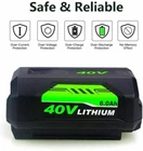 Product Description Previous page Next page Lagre Capacity Wide Compatibility Safe & Reliable LED Indicator High Quality Compatible with Ryobi 40V Battery Chargers & Tools Feature Battery Capacity: 6000mAh / Voltage: 40-Volt / Battery Type: Lithium ion Fit for Ryobi Battery PN OP4050A, OP4015, OP4026, OP40201, OP40261, OP4030, OP40301, OP4040, OP40401, OP4050, OP40501, OP40601 (Please use the “Ctrl+F” to search your model) Fit for Ryobi Tools Model RY40180, RY40200, RY40022, RY40201A, RY40202, RY40204, RY40400, R40402, RY40402A, RY40403, RY40403A, RY40411, RY40502A, RY40503, RY40511, RY40601A, RY40LM30, RY40190, RY40430, RY40620, RY40460, RY40250, RY40770, RY40850, RY40610A, RY40210B, RY40240, RY40440. (Doesn't fit RY40002, RY40408) Fit for Ryobi Charger Model OP400, OP400A, OP401, OP403, OP403A, OP404A, OP406A, ZROP401