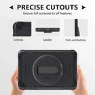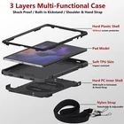 Key Features: 【Built-In Kickstand】This case with a rotating stand that offers multiple viewing angles, allowing you to free up your hands for studying,working,or enjoying your favorite shows. 【Unique Triple Shockproof Protection 】Compared with the outdated design,the unique CASE designed with an add-on bumper made by high-performing impact material.Absorbs more shock energy between the tablet and the hard back case. 【Shoulder & Hand Strap 】The Case comes with a shoulder strap for hands-free outdoor activities,it allows you to comfortably carry your device while on the go, freeing up your hands for effortless movement.Also equipped with a hand strap feature that ensures a secure grip to prevent accidental slips during your Tablet usage.Stay connected and protected wherever you go with this versatile case designed for active lifestyles.