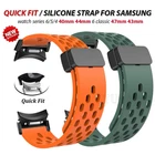 Magnetic Silicone Band Strap For Samsung Galaxy Watch 4 5 40mm 44 mm 5 Pro 45mm Silicone Band Description: 100% brand new and high quality. Solid color elastic silicone bracelet, durable, lightweight, adjustable. Simple fashion design. Material: silicone Color: As pictured Size:20mm Metal Connector: Feature: New suitable for Samsung Watch 4/5/6 metal head pellets with a new press design, easy to disassemble with just one press, and a pleasing clicking sound when connected to the watch Stainless steel material, durable and wear-resistant, no need for long-term replacement Metal paper feel, making the watch more advanced Specifications: Material: stainless steel Applicable Band Width: 20mm Quantity unit: one pair Compatible With: For Samsung Galaxy Watch 4 40mm For Samsung Galaxy Watch 4 44mm For Samsung Galaxy Watch 4 Classic 42mm For Samsung Galaxy Watch 4 Classic 46mm For Samsung Galaxy Watch 5 40mm For Samsung Galaxy Watch 5 44mm For Samsung Galaxy Watch 5 Pro 45mm For Samsung Galaxy Watch 6 40mm For Samsung Galaxy Watch 6 44mm For Samsung Galaxy Watch 6 Classic 43mm For Samsung Galaxy Watch 6 Classic 47mm Package includes: 1*watch strap 1 Pair Quickfit Metal Connector or 1 Pair Quickfit Metal Connector Only Note: 1.Please allow 2-3% error due to manual measurement. Please make sure you don't mind before you bid. 2.The colors can be different as a difference indicator, please understand. Band Type Two-Piece Strap Band Width 20 mm Brand Unbranded Department Unisex Material Silicone Theme Sports Type Wristwatch Band Compatible Brand Samsung Watch 5 Pro 45mm Compatible Model Samsung Watch 4 Classic 42/46mm