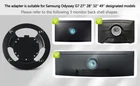Tips: There are some differences between the advertising drawing and the physical drawing. For details, please refer to the physical drawing. For Samsung G6 G7 G9 27/28/32/49 Inch Monitor C49HG90DM C49J890DK C49RG90SS S49A950UI C32G75TQS C27G75TQS C32HG70QQ C27HG70QQ S32BG650E S32BG652E S32BG654E C27G77TQS - OEM Wall Mount VESA Adapter Bracket Description 1.Product Name: Samsung Display OEM Wall Mount VESA Adapter Bracket 2.Condition: Brand New 3.Rectangular compatible Samsung monitor models: 49 I nch monitor C 49 J890 : LC49J890DKNXZA LC49J890DKUXEN LC49J890DKRXEN LC49J890DKEXXY C49J890DKN C49J890DKU C49J890DKR C49J890DKE C49J890DKC C 49 HG90 : LC49HG90DMKXKR LC49HG90DMNXZA LC49HG90DMUXEN LC49HG90DMRXEN LC49HG90DMMXZN LC49HG90DMMXUF LC49HG90DMEXZW LC49HG90DMEXXY LC49HG90DMEXXV C49HG90DMK C49HG90DMN C49HG90DMU C49HG90DMR C49HG90DMM C49HG90DME C49HG90DMC C49 RG90 : LC49RG90SSKXKR LC49RG90SSUXEN LC49RG90SSNXZA LC49RG90SSCXXK LC49RG90SSRXEN LC49RG90SSRXUF LC49RG90SSEXXY LC49RG90SSMXUF C49RG90SSK C49RG90SSU C49RG90SSN C49RG90SSC C49RG90SSR C49RG90SSE C49RG90SSM S49A9 50 : LS49A950UICXZW LS49A950UINXZA LS49A950UIPXEN LS49A950UIUXEN LS49A950UIEXXY S49A950UIC S49A950UIN S49A950UIP S49A950UIU S49A950UIE 32 Inch monitor C32G75TQ S : LC32G75TQSIXRU LC32G75TQSIXCI LC32G75TQSNXZA LC32G75TQSKXKR LC32G75TQSMXUE LC32G75TQSEXXP LC32G75TQSEXXS LC32G75TQSPXXU LC32G75TQSUXEN LC32G75TQSRXXU LC32G75TQSCXZW C32G75TQSI C32G75TQSN C32G75TQSK C32G75TQSM C32G75TQSE C32G75TQSP C32G75TQSU C32G75TQSR C32G75TQSC S3 2BG650E: LS32BG650EUXEN LS3 2BG650EUXX U LS32BG650EKXKR LS32 BG650ECXXF LS32BG650ECXZW LS32BG650EIXCI LS32BG650ENXGO LS32BG650EMXUE S32BG650EU S32BG650EK S32BG650EC S32BG650EI S32BG650EN S32BG650EM S32BG6 52E: LS32BG652ENXGO LS32BG652EIXCI LS32BG652EUXEN LS32BG652EEXXY S32BG652EN S32BG652EI S32BG652EU S32BG652EE S32BG65 4E : LS32BG654EKXKR LS32BG654ECXXF S32BG654 EK S32BG654EC S32BG 752N : LS32BG752NNXGO S32BG 752NN S32BG702E : LS32BG702ENXGO S32BG 702E N 28 Inch monitor LS28AG 700 N : LS28AG700NNXZA S28AG700NN LS28BG702E : LS28BG702ENXGO LS28BG702EN 27 Inch monitor C27G75 TQS : LC27G75TQSNXZA LC27G75TQSUXEN LC27G75TQSMXUE LC27G75TQSWXXL LC27G75TQSCXZW LC27G75TQSRXEN LC27G75TQSRXXU LC27G75TQSIXCI LC27G75TQSEXXY C27G75TQSN C27G75TQSU C27G75TQSM C27G75TQSW C27G75TQSC C27G75TQSR C27G75TQSI C27G75TQSE C27G77TQ S : LC27G77TQSKXKR LC27G77TQSNXZA LC27G77TQSCXZW C27G77TQ SK C27G77TQSN C27G77TQSC S2 7BG 654E : LS27BG654EIXCI S27B G654EI S27BG65 2E : LS27BG652ENXGO LS27BG652EEXXY LS27BG652EIXCI S27BG652E N S27BG652EE S27BG652EI S27BG650 E : LS27BG650EKXKR LS27BG650ENXGO LS27BG650EUXXU LS27BG650EMXUE LS27BG650ECXZW LS27BG650EIXUA S27BG650EK S27BG650EN S27BG650EU S27BG650EM S27BG650EC S27BG650EI 4. Square compatible Samsung display models: 32 Inch monitor C32HG70QQ: LC32HG70QQIXCI LC32HG70QQNXZA LC32HG70QQUXEN LC32HG70QQMXUF LC32HG70QQEXXY LC32HG70QQCXXK LC32HG70QQKXKR C32HG70QQI C32HG70QQN C32HG70QQU C32HG70QQM C32HG70QQE C32HG70QQC C32HG70QQK 27 Inch monitor C27HG 70QQ: LC27HG70QQUXEN LC27HG70QQNXZA LC27HG70QQKXKR LC27HG70QQCXXF LC27HG70QQIXCI LC27HG70QQMXZN LC27HG70QQEXXD C27HG70QQU C27HG70QQN C27HG70QQK C27HG 70QQC C27HG70QQI C27HG70QQM C27HG70QQE 5.Warranty time:90 Day! 6.Whether in stock: YES ! 7.Use difficulty: Simple! Product packaging content: 1 x OEM Wall Mount VESA Adapter Bracket and four screws