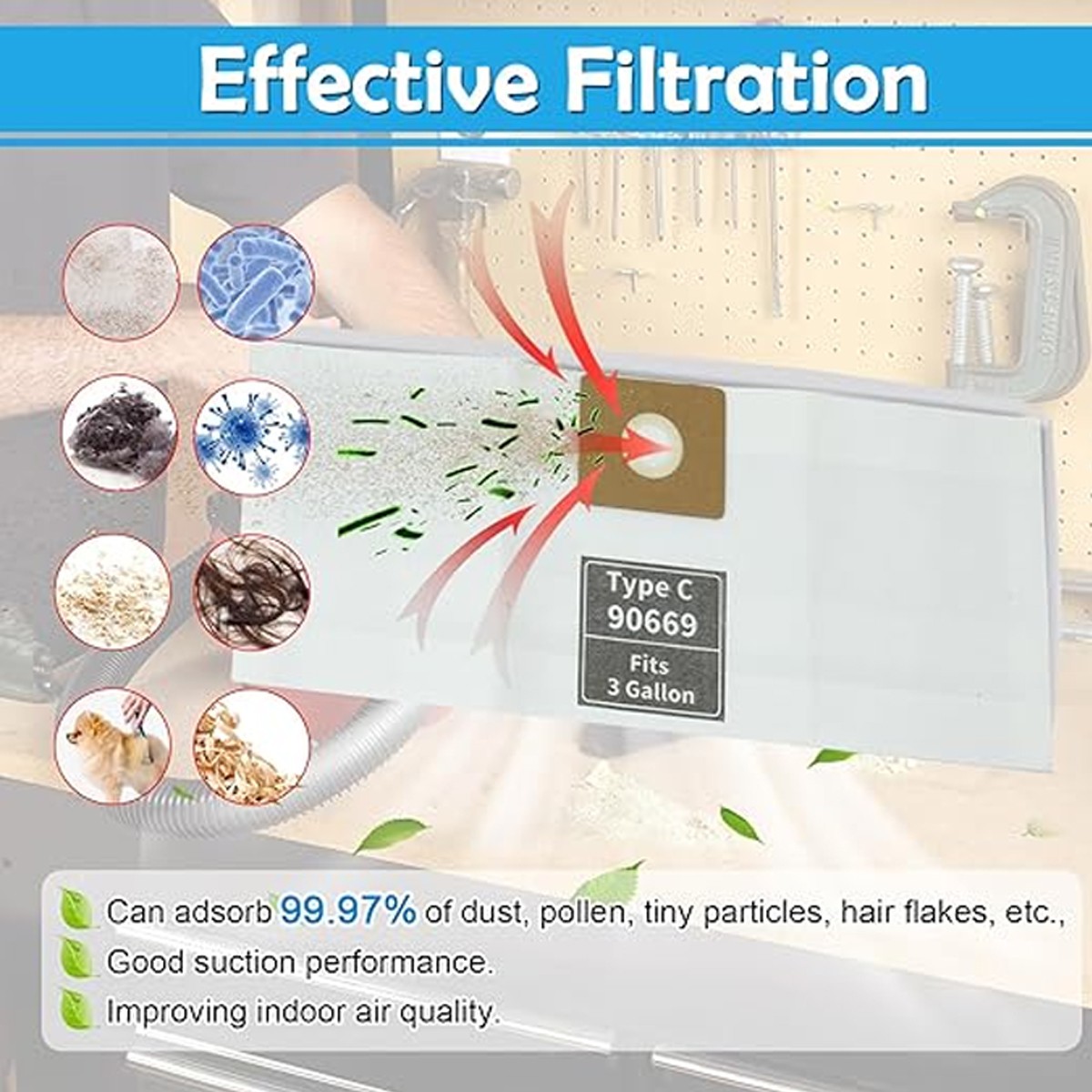 For Shop Vac 3 Gallon Bags - 90669 All Around Collection Type C Vacuum Bags