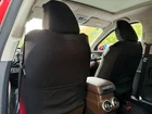 NOT WORKABLE FOR TRUCK SEATS WITH BUILT IN SAFETY BELT, 1/3 & 2/3 SEATS. Airbag Friendly : Officially tested special stitching on front seat cover to allow airbag deployment. Car Seat Cover Warranty: 2 years Manufacturers' warranty Package Includes: Front seat covers x 2pcs Headrest covers x 2pcs Size: Universal Size( Front Rows ) ( Approx size ) Headrest cover x 2 30.00 x 29.00cm ( 11.81 x 11.42 inch ) Front Seat Cover Top 56.00 x 65.50cm ( 22.05 x 25.79 inch ) Front Seat Cover Bottom: 55.00x50.50cm(21.65x19.88 inch) Material: Waterproof Jacquard+Canvas with 5mm thick foam padding 5mm foam padded for extra comfort and full protection. Double stitching for toughest daily use and sporty looks. Airbag safe Technology used for strict safety purpose. Storage pockets on front back. Seat Cover Color: Black&Dark Gray Thanks you for your business. Installation video, please click the link or copy the link to your browser address: https://www.youtube.com/shorts/PCDWBYst1KI Click here to watch YouTube Shorts Installation video