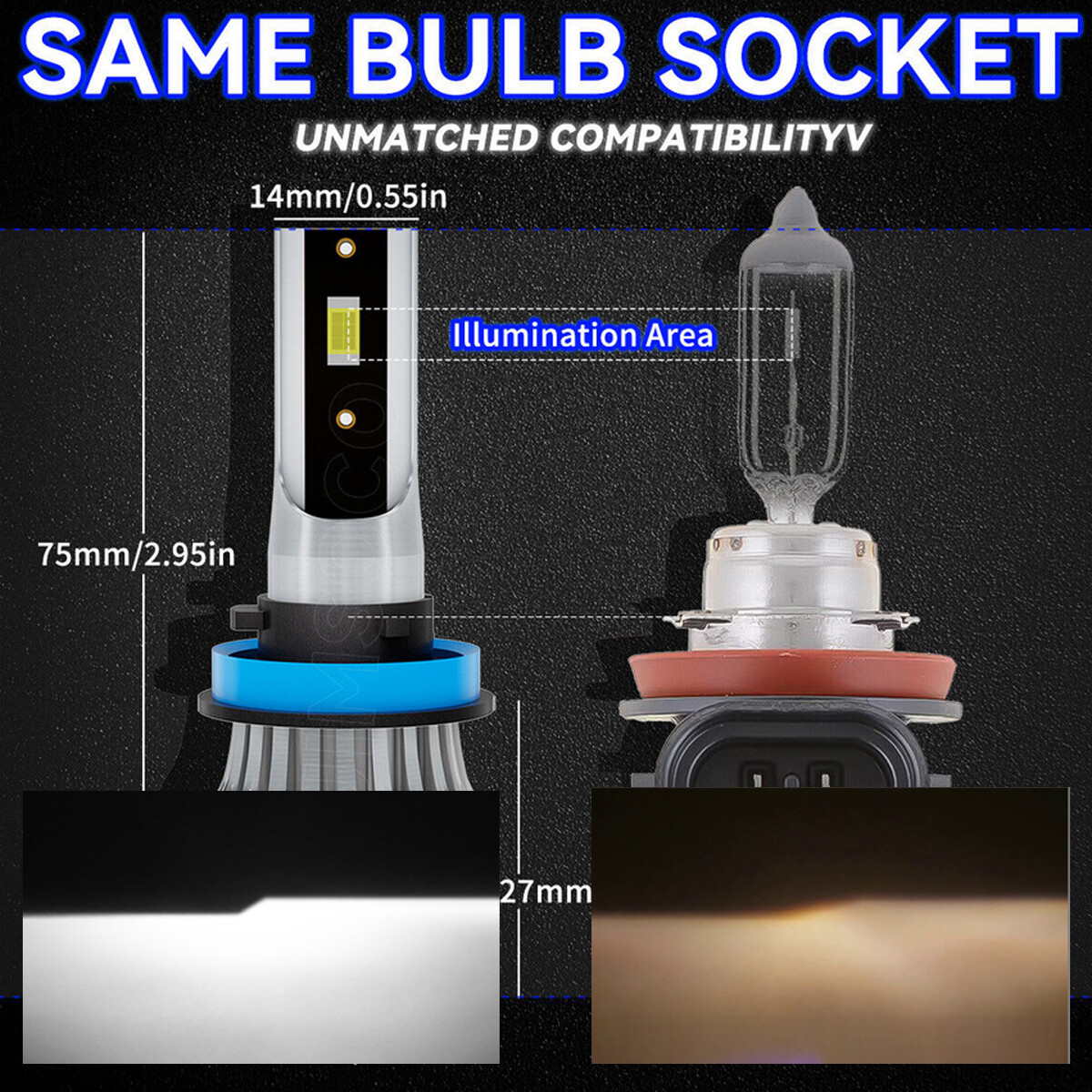 The compatible vehicle list shows only partial cars due to the ebay limits, if your car plug is same with 9005(HB3)+H11(H8,H9)+H10(9145/9140) Fog Lights , the item will fit your car. Features: 1.Designed to enhance your visibility and driving safety at night and bad weather. 2.High Power CSP LED light source, super bright without blind zone. 3.Efficient cooling system ensures maximum Headlight light performance and appropriate working temperature. 4.Built-in smart IC chip speed up heat transfer provides intelligent temperature control and allows for instant start. 5.IP6 7 waterproo nd high temperature resistant, withstand extreme weather conditions. 6.Easy installation without any modification or additional wiring, plug and play. Specifications: * Brand: AUIMSOCO * Condition: 100% Brand New * Light Source: AUIMSOCO customized CSP LED chips * Material: Aviation Aluminum + ABS * Color Temperature: 6500K White * Working Voltage: DC 12V (9V-32V) * Output Power: 100W Per Bulb,Total 200W Per Pair * Number of Bulbs: 6 * Waterproof Rate: IP67 * Luminous Flux: 10000LM/per bulb, 20000LM/per Pair * Working Temperature: -40℃ ~ +80℃ * Bulb Type: 9005(HB3)+H11(H8,H9)+H10 9145 Fog Light * Beam Type: Headlight,Foglight,DRL(daytime running lights) * Beam Angle: 360 Degrees *Certified by: CE & ROHs * Lifespan: Over 50,000 hours * Heat Dissipation Principle: Aluminum Radiator * Fitment Type: Direct Replacement * Placement on Vehicle: Front, Left, Right *CANBUS ERROR FREE: No. For most vehicles, just directly plug and play.Yet for some vehicles with CAN-BUS system, it may require install decoder or load resistor to avoid hyper flash or fast blinking. Package Included: 2x 9005(HB3) LED High Beam Light Bulbs 2x H11 LED Low Beam Light Bulbs 2x H10 LED Fog Light Bulbs Note: 1.Please check the size of your bulbs on your vehicle before purchasing. 2.Please make sure the headlight housing has enough space for installation before purchasing. 3.Professional installation is highly recommended.If you have any questions, please feel free to contact us. 4.Randomly sent new and old packing boxes. On Sep 27, 2025 at 03:47:50 PDT, seller added the following information: