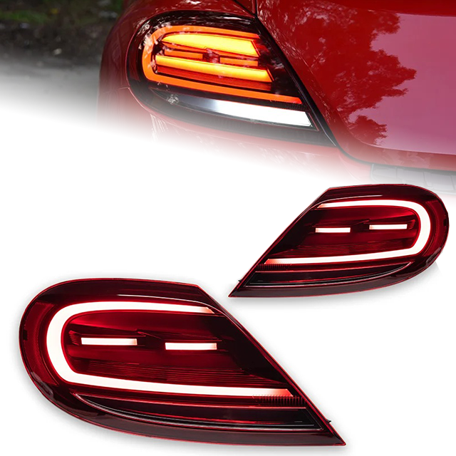 For VW Beetle 2013-2019 Red LED Tail Lights w/ Sequential Turn Signal Rear Lamps