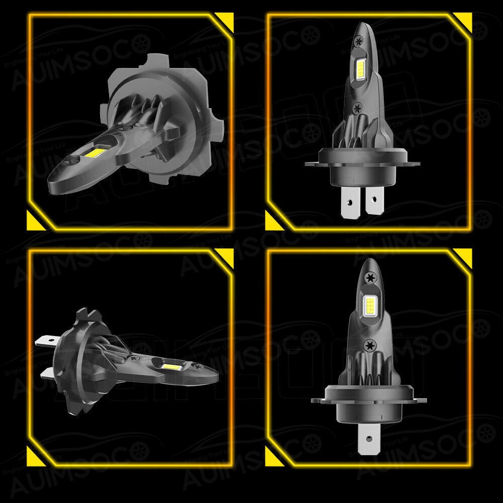 About this item: 【Brightness 300%】AUIMSOCO H7 light bulbs uses the latest upgraded version of the chip, 300% brighter than halogen bulbs, 10000LM 6500K Xenon White, higher brightness, you can enjoy a brighter, safer driving process! 【Less than 10 minutes installation time】H7 light bulb with super mini size, no need to worry about the installation space, installation time less than 10 minutes, the real plug and play! 【Gathering and Bright Beam】H7 light bulbs uses upgraded version of the chip. The 16 pcs design makes the light more gathered and bright, no need to worry about traveling at night, the illumination range is wide enough and will not be scattered. Unique bulbs head design, while ensuring safety, but also bring you a different feeling of shopping! 【Ultra-long Life】A52 H7 light bulbs improved the cooling system, the cooling system is more advanced, the upgraded version of the heat dissipation system allows the lights to be used more than 50,000 hours. IP68 waterproof design can ensure your safety on the road in bad weather. 【High Compatibility】Our H7 light bulbs are compatible with most vehicles, the built-in decoder is designed to work with 99% of vehicles, you can also contact us before you buy, we will check it for you. Specifications: Brand: AUIMSOCO Compatible With: H7 H7 9006 Condition: 100%Brand New/ Never Used Lifespan: >50000 hours Lumens: 10000LM Voltage: DC 9-30V Color: 6500K(White Color) Interchange Part Number: Use for Headlight high Beam, Low Beam, Fog Lights Beam Angle: 360 Degrees Placement on Vehicle: Left, Right, Front Heat Control: Aluminum shell base Warranty: 5 years Complete Kit: No Other Ballast/Driver Required Just Plug and Play - Newest Technology Beam Angel: 360 Degrees Operating TemperatureWith or without fan: -40°C ~ +150°C With or without fan: Fanless Features: 1.Each Bulb have 2 sides of Super Bright LED Chips 2.Complete Kit: No Other Ballast/Driver Required Just Plug and Play - Newest Technology 3.Smart Efficient Cooling System, Fast Heat Dissipation 4.High quality Aluminum heat dissipation ensures the secure temperature range 5.Low Power Consumption than Halogen bulb or Hid Kit, Energy Saving 6.Low Voltage Protection, High Precision Constant Current driver Chip Package include: 6x LED Headlight Bulbs H7 (High Beam) + H7 (Low Beam) + 9006 (Fog Light) New and old packaging will be shipped randomly!!