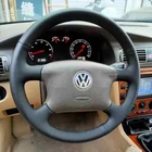 For Volkswagen Passat B5 Golf 4 Hand-stitched Black Leather Steering Wheel Cover