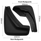 Specification: Material: ABS Plastic Color: Black Installation Site: Tire sides Feature: Brand new and high quality Easy installation and perfect replacement High-quality plastic material, light weight, strong toughness, good softness Protecting your car far from dirt, sand and other direct impact outside the paint Package included: 4x Mud Guard Flaps