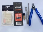 Product description: Specification: Condition: 100% Brand new For Zippo regular lighters, Please note that felt pads won't fit SLIM Version Zippo lighters. If you have any questions please don't hesitate to contact us. Package includes: x1 Cotton kit (Felt pad and cotton); New style cotton kit, same material but different packaging. x1 wick x30 Flint stones x1 Cleaning brush x1 tweezers for installing cotton and wicks x1 pliers for cutting wicks Our goal is customer satisfaction