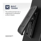 Features: Raised lip guard keeps the screen raised off the surface (and out of harm's way!) Precise port and button cutouts for easy access to all functions and controls Solid core impact-resistant PC frame with sure-grip finish Includes a swivel belt clip for vertical or horizontal use Durable alloy kickstand conveniently props the phone for perfect landscape viewing Compatibility: iPhone 11 Pro Max iPhone 11 Pro Max Slim Holster and Case This Slim holster set is an ultra thin iPhone 11 Pro Max belt case with built with attention to detail. One of our top selling belt cases, the set features a solid-core polycarbonate frame and non slip rubberized grip finish. Inside the clip a soft microfiber lining adds protection for the inward facing screen while the holster keeps your phone conveniently at your side. Non-slip Grip Designed to perfectly align with the contours of the phone, the case maintains a slim profile and surfaced with a rubberized grip texture. In addition the cover features a raised lip keeping the screen elevated and scratch-free should it be placed face down on a rough surface. Secure Fit Holster Every set comes complete with a secure-fit holster. The belt holster is designed to rotate both vertically and horizontally to match any user preference. Additional features include a built-in alloy kickstand and a heavy duty 5-increment swivel clip. Key Features: The Slim belt clip holster features an ultra slim profile, rubberized finish and open button cutouts for easy access to all functions and controls on your new iPhone Engineered to last with a solid-core polycarbonate frame, reinforced belt clip latch and easy-grip rubberized finish The combo holster design ensures your phone remains both secure and easily accessible, while the 180 degree rotating swivel clip provides easy adjustability Secure slide in design makes phone mounting / dismounting a breeze A soft felt lining protects the inward facing screen & the built in kickstand makes the Slim Case the perfect hands-free viewing case Technical Specs: - Thin-Fit snap on Polycarbonate case with silver metal kickstand + belt clip holster - Rubberized soft touch coating