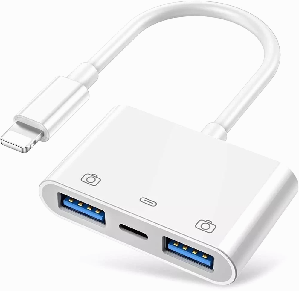 Product Description For iPhone Male to USB Female Adapter OTG and Charger Cable for iPhone 11 12 Mini max pro xs xr x se 7 8plus Ipad air Camera Memory Stick Flash Drive Cord Converter Charging Splitter For iPhone to USB 3.0 Adapter, USB 3.0 Camera Adapter Compatible with iPhone iPad, iPhone USB Adapter with 2 USB 3.0 and 1 Charging Port, No Application, Plug and Play (White) About this item ✔ Plug and Play: The usb adapter for iPhone/iPad does not require an application, and there is no need to remove the camera's memory card.Using a usb to iPhone adapter, you can copy beautiful scenery and cute people photos and videos to iPhone and iPad.This is an excellent choice for copying photos or videos from the camera in a short time. The transmission is 60MB/S-90MB/S. ✔ Import & Export Photos/Video/Files/Audio: This dual usb camera otg adapter more convenient to transmit photos and videos from camera to iPhone and iPad. For iOS 9.2-13, support transfer the picture video is the one-way transmit. For iOS 13 and later, it can import & export transfer Photos, Video, MP3 files, Excel, Word, PPT, PDF by open the 'Files' App. ✔ Friendly Office Helper: Light and durable, short cable, better performance.With usb ipad adapter, you can directly plug the PC keyboard or mouse into the iPad,improving your typing speed and productivity. usb adapter for iPad widely compatible with more USB devices, like Hubs, USB flash drives, Camera, Guitar, MIDI keyboard, Digital piano, Mouse etc. Compatible with iPhone 13 mini/13/13 Pro/13 Pro Max/12 mini/12/12 Pro/12 Pro Max/11/11 Pro/X/XS/XS MAX/XR/8/8Plus/7/7 Plus/iPad/iPod. ✔ Charge Your iPhone and iPad: This usb adapter for iphone adds a charging port for iphone/ipad, charging,view photos or videos can be operated at the same time.Don't worry about the power shortage of your phone anymore.More importantly, this usb to iPhone adapter can also allow you to share battery power with your friends and solve your friends' urgent needs. ✔ Do The Best: Using the usb iphone adapter,Will bring you more interesting moments,Using the iphone to usb adapter, Will bring you more convenience. We promise 45 days no reason money-back guarantee and 12 months replacement warranty. Please feel free to contact us if you have any questions.