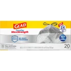 Glad® ForceFlex MaxStrength Tall Kitchen Trash Bags provide strength and odor fighting technology to help your kitchen smell fresh. These 13 gallon bags are 25% more durable* with a 2X reinforced top** to pull and carry, helping prevent rips at the top of the bag. It also features an outer leak protection layer and inner layer that stretches to help prevent rips and tears. OdorShield® technology provides odor control to help fight smells. Made with 100% renewable electricity***. *Vs. 13 gal Glad ForceFlex. **Compared to a standard 13 gal Glad kitchen bag. ***For bags manufactured in our US plants. All electrical energy used is offset by virtual power purchase agreements and purchased renewable energy certificates (RECs). 2X REINFORCED TOP**: The 2X reinforced top** helps prevent rips and tears at the top of the bag when you pull it out of the trash can and carry it out 25% MORE DURABLE*: Glad® ForceFlex MaxStrength Tall Kitchen Trash Bags are 25% more durable versus Glad® 13 gallon ForceFlex tall kitchen bags; packaging may vary FORCEFLEX MAXSTRENGTH: These bags feature double side seams and grips the can drawstring plus LeakGuard® plus RipGuard® provide protection against leaks, rips and tears NEUTRALIZES TOUGH TRASH ODORS: OdorShield® technology and Gain with Febreze freshness work to trap odors and help control garbage smells in your kitchen MADE WITH 100% RENEWABLE ELECTRICITY***: For bags manufactured in our US plants; all electrical energy offset by virtual power purchase agreements and purchased renewable energy certificates (RECs)
