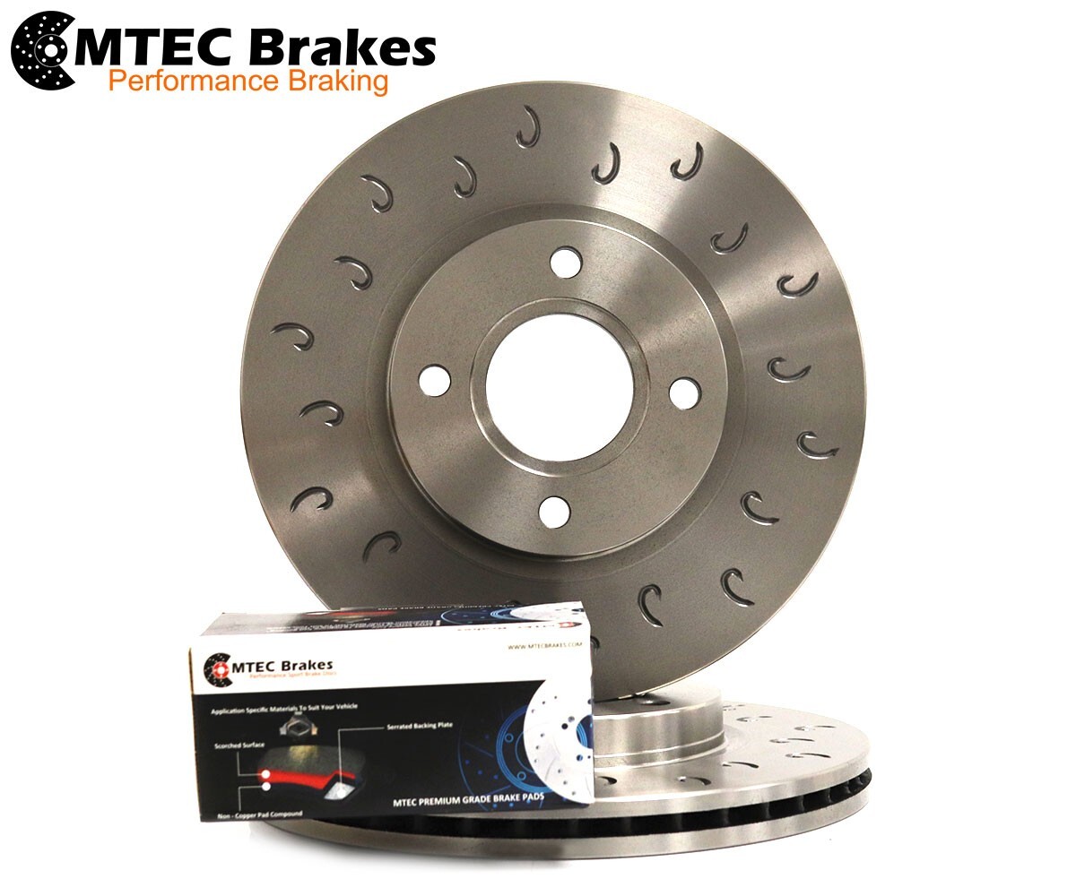 This is a full set of 4, front and rear performance drilled brake discs to fit the vehicles listed below. Ford Fiesta MK7 ST180 C Hook Performance Brake Discs MTEC Pads Front & Rear 278MM X 23MM FRONT 4 STUD 253MM X 11MM REAR 4 STUD THEY ALSO COME WITH MTEC PADS FRONT AND REAR Important Additional Information Free UK Mainland and Ireland postage! For Customer Service Queries Please Use the eBay Messaging Service If your fitment is not listed, check our other items and our shop. After purchase you MUST email/message/phone us with your model details so we can ensure you have purchased the correct items for your car. MTEC Brakes discs can be supplied in drilled and grooved, grooved only, dimpled and grooved or drilled only, all at the same price! Special Offer! Purchase a set of pads with discs & pay no extra for the postage! Key Benefits of MTEC Discs The grooves help deglaze the pad and prevent fade which occurs when the pad and disc gets too hot! The holes help to keep the discs cool and dissipate heat! The grooves also help to channel water away from the disc surface! Stopping distances are reduced! They add the finishing touch behind alloys! Longer disc life! Reduced weight! No modifications needed to fit! Straight swap for your old standard discs! Motorsport Tunning & Engineering Company established in 2004. We are a UK based company that specialise in the manufacturing and supply of performance brake discs and brake pads. Our discs are machined using state of the art CNC machines which ensure all designs are cut with precision. Delivery Times Standard delivery on all items to the UK and Ireland is 3-4 working days.Delivery times to other countries may vary. Next working day delivery is available on selected items and can be provided for an additional £5 please contact us for details. Saturday deliveries can be arranged at an additional cost of £15. Shipping Rates (shipping is fully insured) Country Parcels 1 Country Parcels 1 France £12 Greece £20 Germany £12 Belgium £10 Italy £20 Netherlands £10 Portugal £20 Luxembourg £10 Spain £20 Finland £25 Balerics * Austria £25 UK Mainland Free Czech Republic £25 Northern Ireland Free Hungary £25 Republic Of Ireland Free Lithuania £25 Latvia £55 Norway £25 Estonia £55 Poland £25 Bulgaria £30 Slovakia £25 Canary Islands £30 Slovenia £25 Gibraltar £30 Sweden £25 Denmark £10 Malta £55 Romania £55 Turkey £55 *Please contact us to determine shipping rates. BFPO Addresses Please contact us to determine shipping rates. All other countries not listed please contact us to determine shipping rates. UK postage surcharge (£5.00) to the following postcodes / regions. IV, HS, KA27-28, KW, PA20-49, PA60-78, PH17-26, PH30-44, PH49-50, ZE, TR21-25. All Channel Islands. C.C
