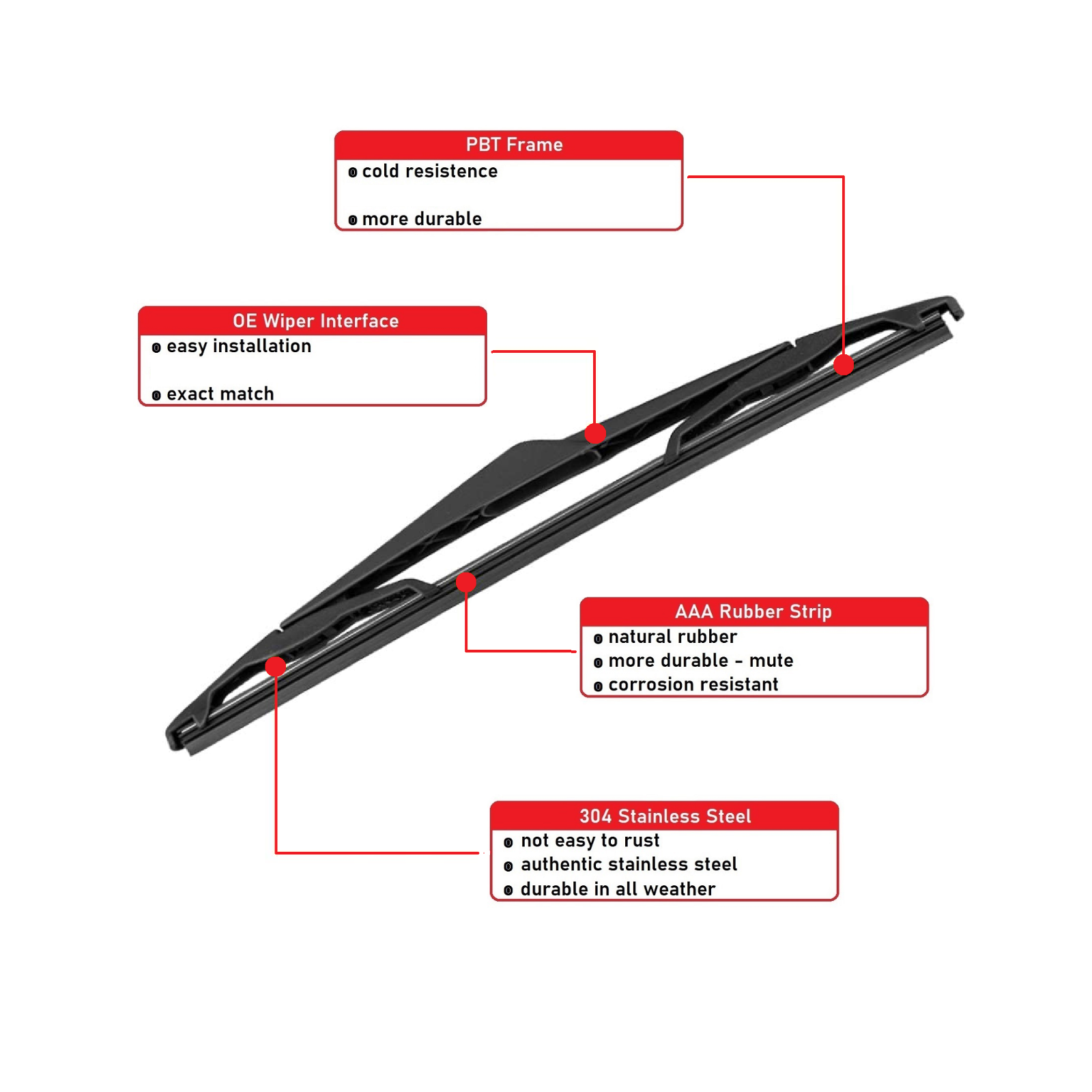 This rear wiper arm blade is a perfect fit for my Ford Focus! It installed easily and provides a smooth, streak-free wipe every time. The strong spring pressure keeps it firmly against the glass, even in heavy rain. The rubber material feels durable, and it matches the contour of my rear window perfectly. Great OEM replacement at an affordable price - highly recommend for 2012-2018 Focus owners!