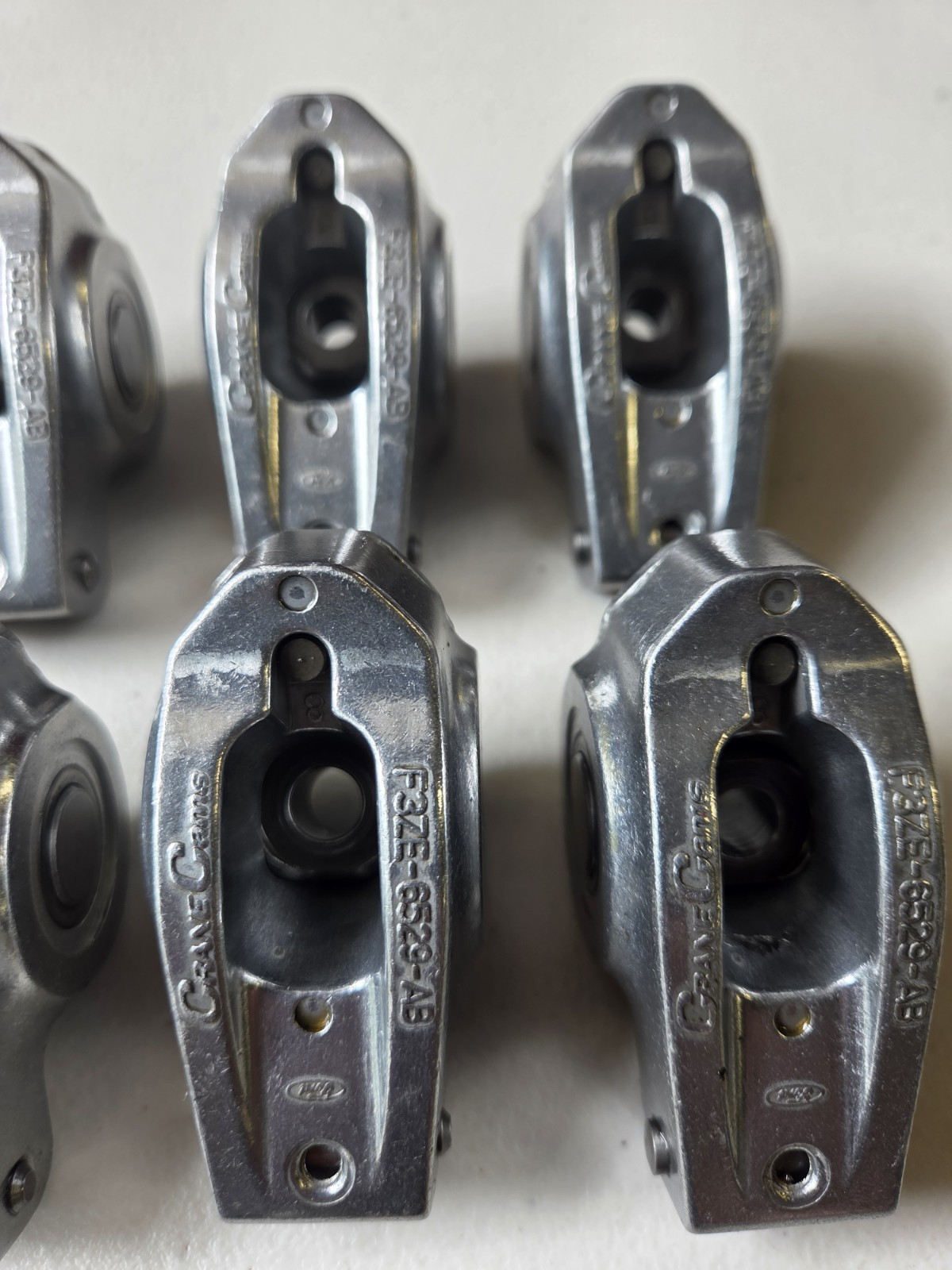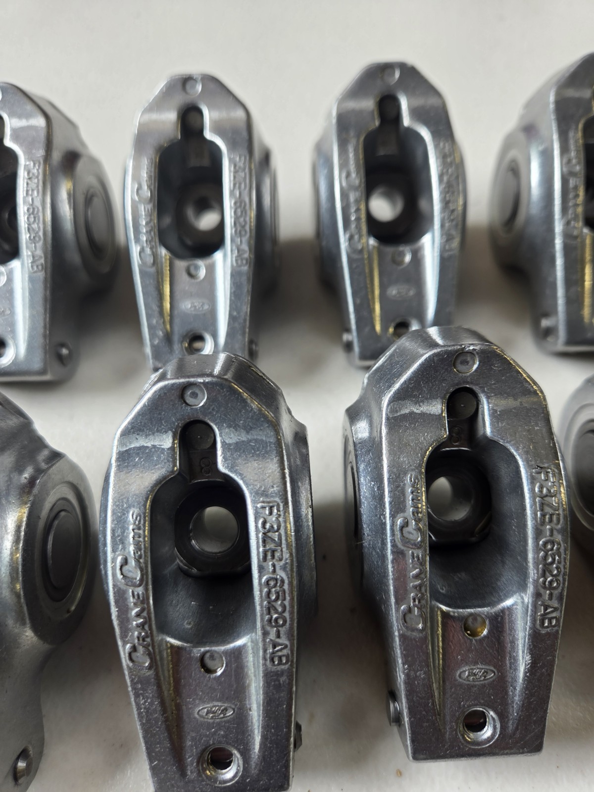 Full set of very clean Ford Racing Crane Cams pedestal mount aluminum roller rocker arms (16) and shim kit for SBF Windsor engines using bolt down (5/16-18) pedestal mounted rocker arms. These are complete with all hardware and a full set of shims. They have low hours and are in excellent condition. Will ship free in US with carrier of my choice. Thanks for looking!