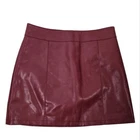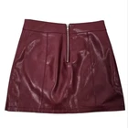 Forever 21 Burgundy Mini Office Siren Y2K Skirt. Size L. * teeny scuff on back right side directly on the bottom hem Mini skirt featuring a back zipper closure, a-line silhouette, faux leather, and fully lined. Measurements are approximate. Skirt in good preowned condition. chest 15" length 16" hips 19" material 100% polyurethane stretch No N722 4/15