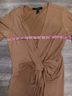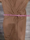 Forever 21 Contemporary Brown Dress Size medium I usually wore it to work but with the low neckline I would pair it with a red tank top. There is a button where you can snap it, but it's still low. There are loose threads but no stains or rips. Good used condition. Made of polyester and hand wash only This is a nice sophiscated dress