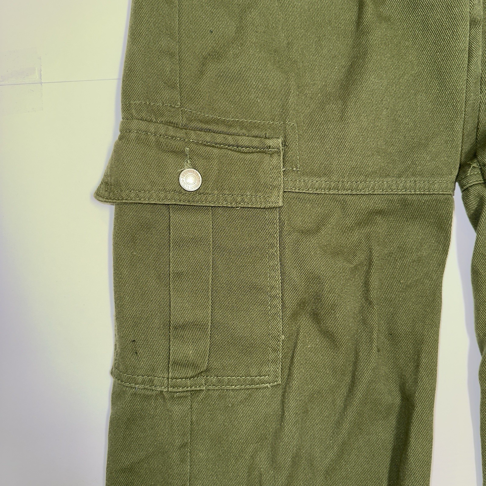 The Forever 21 Green Khaki Cargo Pants in size small are perfect for a casual occasion. Made from cotton, these regular-fit pants feature a flat front design with pockets for added functionality. The stylish cargo design, along with the green color, makes them versatile for summer, fall, and spring seasons. Easy to care for with machine washable instructions and from the trusted brand FOREVER 21, these pants are a great addition to any woman's wardrobe. Only used twice.