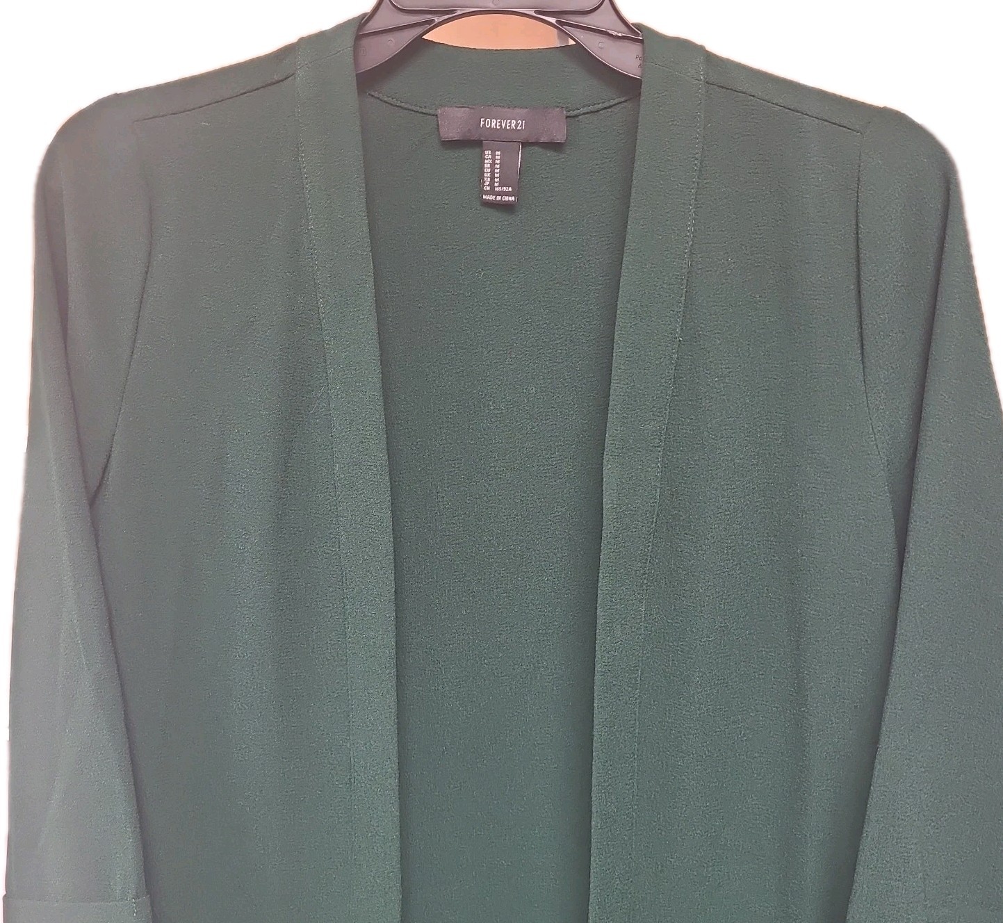 This Forever 21 long cardigan in women's size medium is a versatile piece perfect for casual or formal occasions. The solid green color and long sleeves with roll tab details make it a stylish choice for the winter, fall, or spring seasons. Made of polyester fleece fabric, this lightweight sweater features a hood, pockets, and an open design for added comfort and convenience. The bohemian and classic themes of this cardigan make it a standout addition to any wardrobe. Machine washable for easy care, this cardigan is a must-have for women looking for a cozy yet fashionable outerwear option.