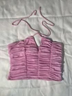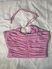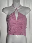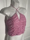 Forever 21 Pink Ruched V Neck Halter Top Size XL Y2K Clubwear Going Out Measurements in photos