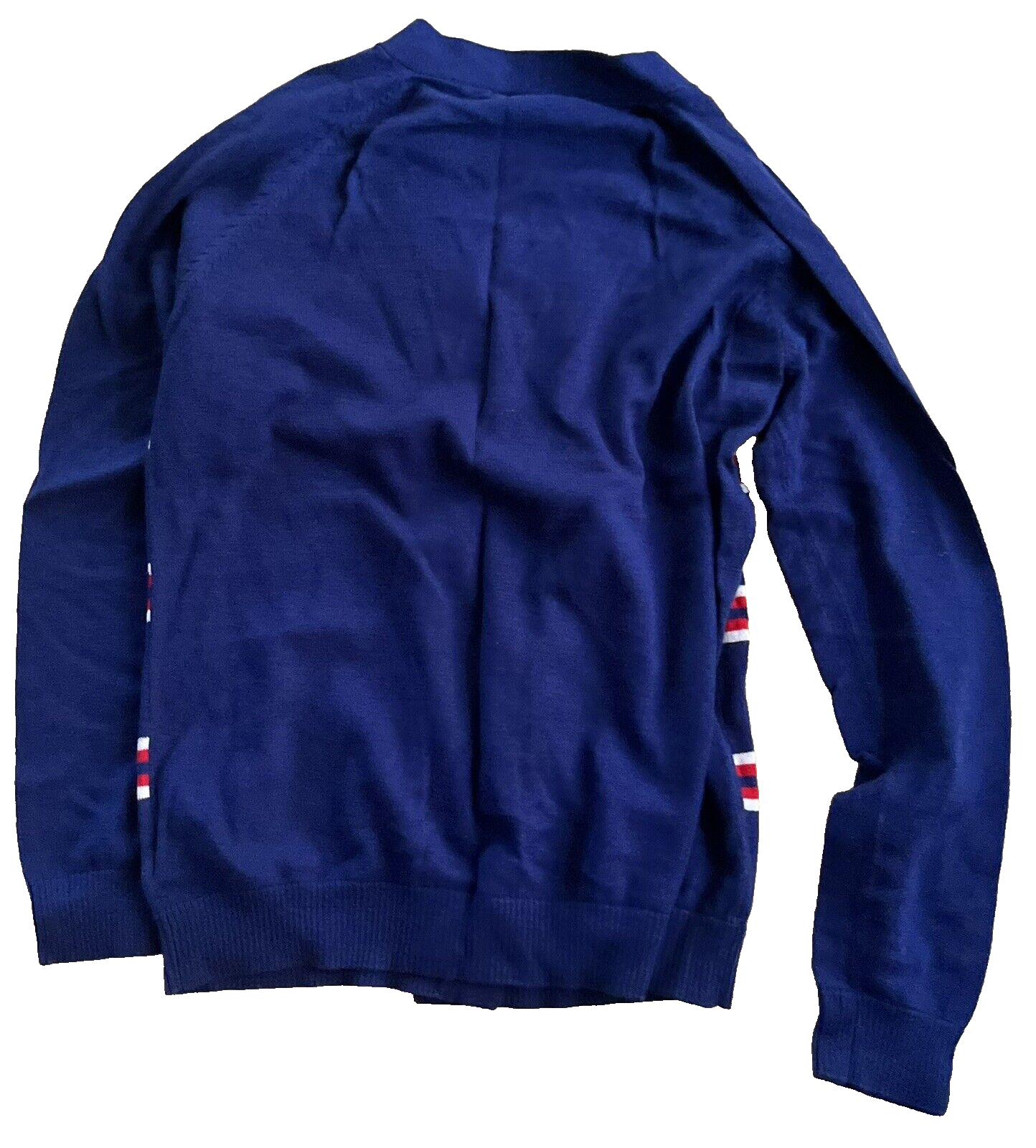 FOREVER 21 Cardigan Sweater Long Sleeve Button Up V-Neck Blue with Red and White Stripes Size Small