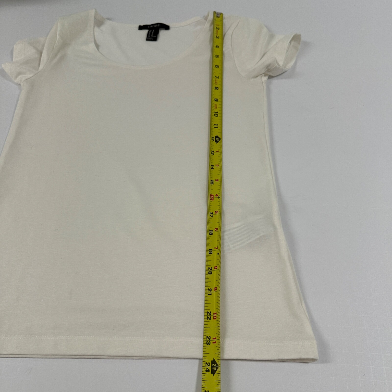All items have been cleaned per eBay standards & policies. This Forever 21 women's T-shirt is a basic and stylish addition to your wardrobe. Made with a comfortable blend of polyester, spandex, rayon, and acrylic, it features a round neck and short sleeves, perfect for any casual occasion. The T-shirt is available in size M and has a regular fit, making it suitable for most women. Its stretch feature ensures a comfortable and flattering fit. The T-shirt comes in a classic white color that can be easily paired with any outfit.