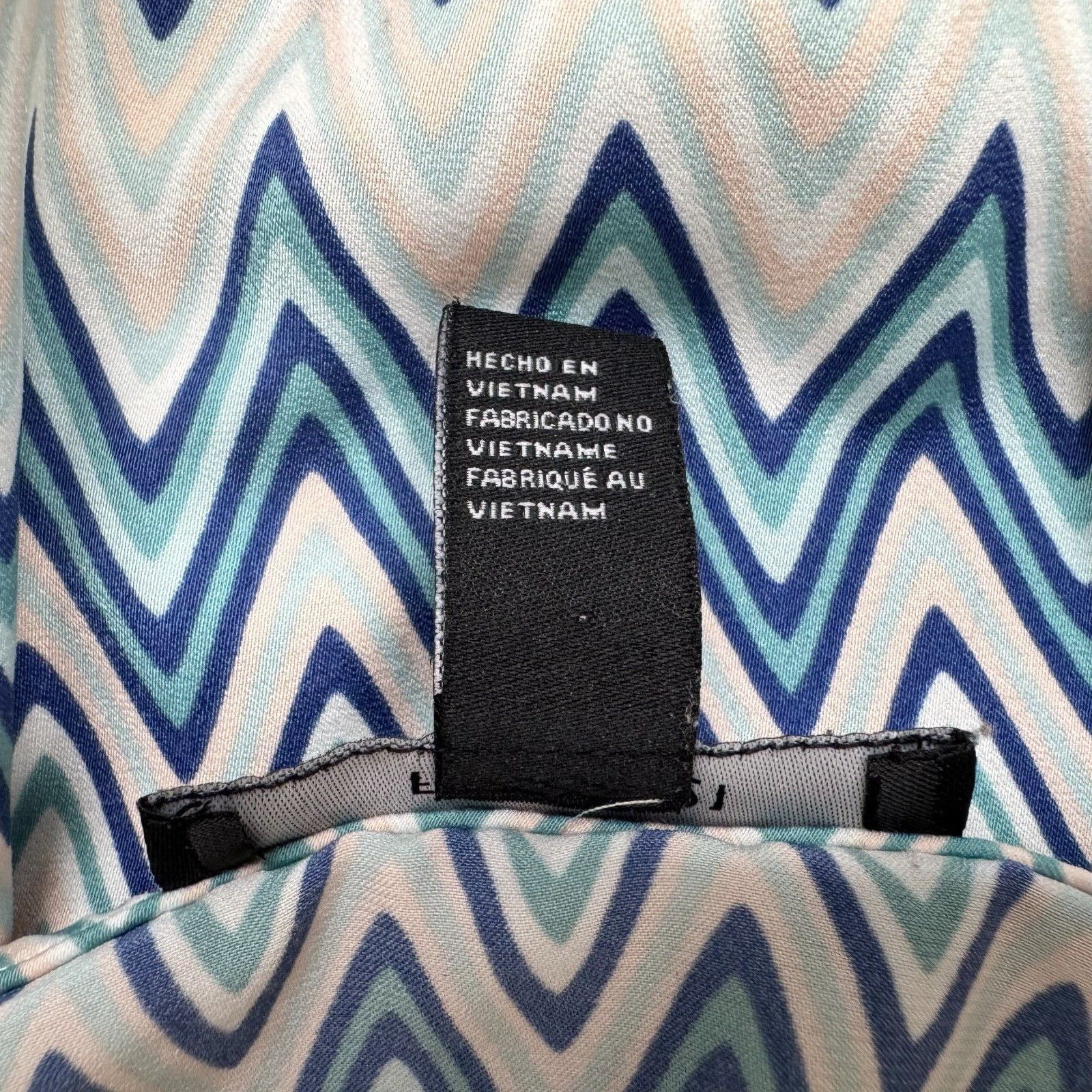This is a white cropped top from Forever 21 in size M. It features a cowl neck, spaghetti straps, and a zigzag print. The sleeveless blouse has a pullover closure and is made of polyester with spandex. Ideal for party, cocktail, or casual occasions in the summer, fall, or spring seasons. It has a slim fit and designer theme. Measurements, Materials and Item Care: See labels photos. Item has been washed and it is already packed, I will ship the same day or next business day. Color might differ from picture due to flashlight used , also it depends on your monitor light settings. Open to offers. B-1946