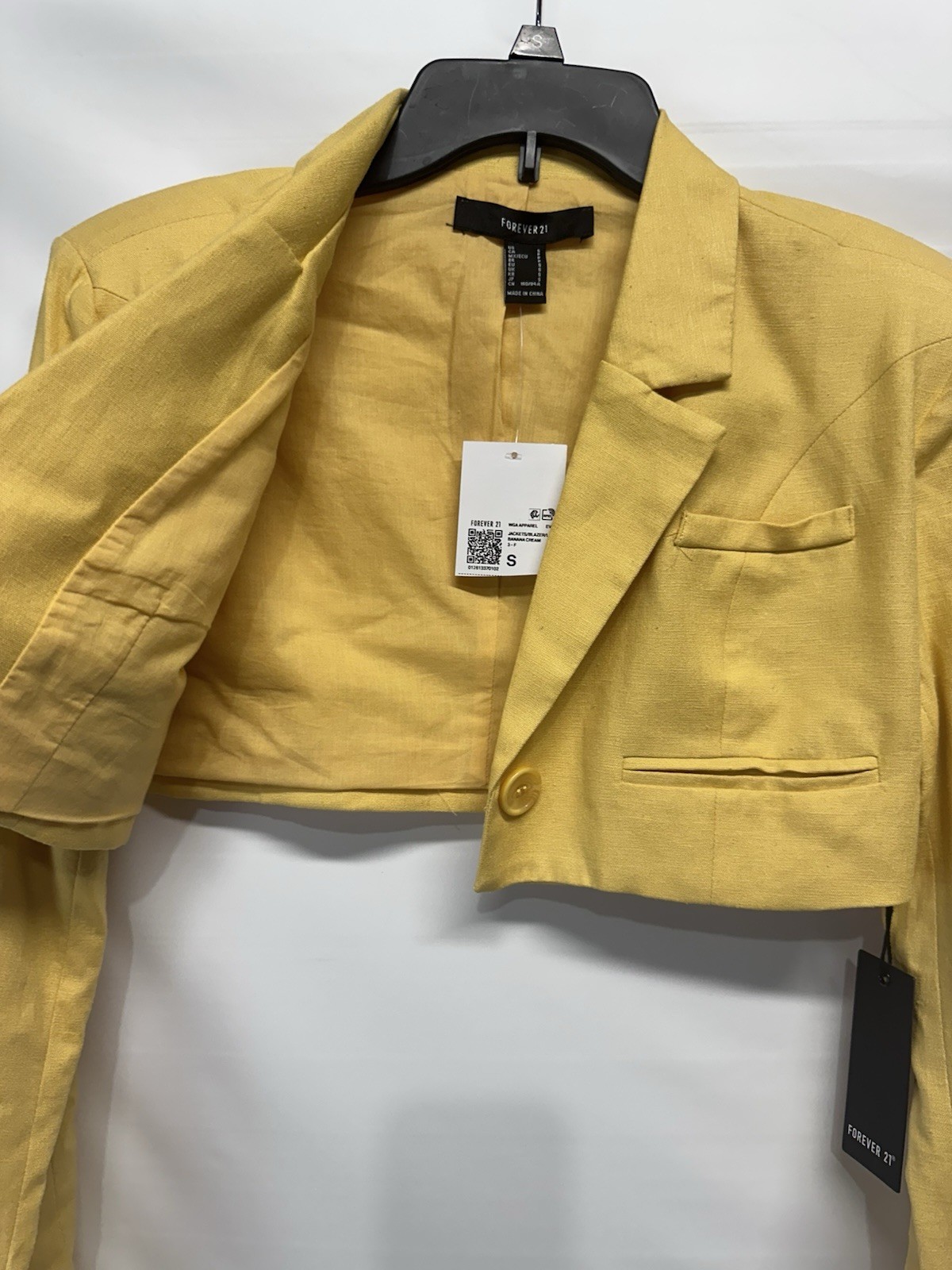 The Forever 21 Women's Linen Rayon Blend Cropped Blazer Jacket in Yellow is a stylish and versatile piece designed for various occasions. Made from a comfortable linen blend material, this blazer features a solid pattern with long sleeves and a button closure. The cropped style adds a trendy touch, while the classic fit and lining make it suitable for summer, fall, and spring events. Easy to care for with hand wash only, this blazer is perfect for parties, cocktails, casual outings, or business meetings.