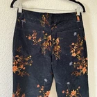 Forever21 Women’s Velvet Flare Pants Medium Floral Print Boho Festival Fall in great condition/has stretch/ black orange and blue colors / super cute 14” across waist 11”rise 30” inseam Approximate measurements All final sale #91 Casual Fall Boho Hippie Festival concert western cottage core coastal cowgirl