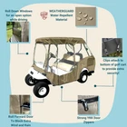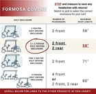 Store New Arrivals Add to Favorite View Feedback Contact Formosa | 4 Person Golf Cart Drivable Enclosure Rain Cover Short Roof 58" EZGO, Club Car- Durable YKK Door Zipper - USA Biz (2 Front 2 Rear Facing Seat Bench) 4-Sided Clear Windows | Taupe Description Item model number golf 4 w/2 encl taupe Part Number golf 4 encl 2 seater roof Style Compact Assembly Required Yes Item Package Quantity 1 Color Taupe Pattern Solid Brand Formosa Covers Material Polyester, EU Coated Fabric Country of Origin China Batteries Required? No Item Weight 13.72 pounds Batteries Included? No Usage golf Included Components Bag Is Discontinued By Manufacturer No Product Dimensions 95 x 48 x 60 inches Manufacturer bondvast Expertly Engineered Protection: Specially crafted PVC window taupe golf cart enclosures 4 passenger to keep you warm and dry, avoiding wind and rain interruptions during your golf outings. A tested, 11-year perfected design by Formosa Covers for unparalleled weather shielding. Universal Design, Robust Material: Golf cart covers 2 + 2 seater, fitting most 58" SHORT roofs (EZ GO, Club Car, Yamaha). Dimensions to ensure fit: Roof W 44"-46", Bottom W 48", Bottom L 95", Body H Front 56", Rear H 60". Verify dimensions before ordering! Does Not Fit: Yamaha G29, ICON or Yamaha Drive 2 models. For Yamaha Drive 2 please search ASIN: B005ZWH70Y in Amazon search bar. YKK Zippers and Windows: Featuring top-tier YKK zipper and commercial grade window zippers, enabling easy access while assuring durability. Un-zip and roll up the front and rear windows to utilize existing golf cart windshields, all with the convenience of quality zippers. Optimized for Competitive Edge: Ideal golf cart rain cover 4 passenger to stay snug and warm, ensuring you maintain a loose, ready-for-action physique during your game. This is the golf cart winter cover that gives you an edge over chilly, unprepared competitors! Compact and Portable: Your 4 person golf cart enclosure comes with a matching carry bag, making it a breeze to take it wherever your golf adventures take you. A gift that's perfect for golfers and a must-have for golf cart communities! Product Description Full Coverage Made with premium 600 Denier Polyester and crystal clear PVC panels, this drivable enclosure is perfect for the course or around the community. Easy to install, strong and durable, this cover is built to last and for all seasons. Weather Resistant From chilly breeze, the sunrays and inclement weather, our polyester is water resistant and UV treated. No matter what the elements are, your cart will be protected from debris and most seasonal weather! All in the Details Premium YKK zippers, double stitched hems and durable fabric combine into a reliable driving enclosure. All the details build into this cover and is made to last. Zippers line the doors and windows for a reliable way to adjust how you want to travel! Perfect for Travel With a compact and matching travel bag included, this enclosure can come with you no matter where you take your golf cart or course you play on. The travel friendly cover makes for a perfect gift for family, golf cart owner and golf enthusiast. We've got you and your cart covered for any course Specifications Roof size: 58"L x 45"W Bottom width: 48" Bottom length: 95" Body height front: 56" Rear height: 60" Note: this will not fit 4 seater long roof (extended roof over back bench) that measures up to 80" 4 Passenger Golf Cart Driving Enclosure (2 Passenger Short Roof 58") 600 Denier polyester with PU coated fabric Fits most 2 seater golf carts with a bench Crystal Clear PVC Commercial grade side door zipper YKK Zippers Weather Resistant Add to Cart Add to Cart Add to Cart Add to Cart Add to Cart Add to Cart Customer Reviews 4.3 out of 5 stars 340 4.3 out of 5 stars 2,022 4.3 out of 5 stars 65 4.2 out of 5 stars 602 4.3 out of 5 stars 226 4.2 out of 5 stars 116 Price $129.99 $ 129 . 99 $138.99 $ 138 . 99 $159.99 $ 159 . 99 $199.99 $ 199 . 99 $129.99 $ 129 . 99 $299.99 $ 299 . 99 Dimensions 45"W x 58"H x 59"L 48"W x 60"H x 95"L 46"W x 61"H x 78"L 48"W x 60"H x 95"L 45"W x 58"H x 58"L 44"W x 63"H x 119"L Roof Size Up to 58" Up to 58" Up to 71" Up to 80" Up to 58" Up to 119" Compatible With EZgo, Club Car, Yamaha EZgo, Club Car, Yamaha w/ Bench Seat Yamaha YDR, Yamaha Drive 2007 to Present EZgo, Club Car, Yamaha EZgo, Club Car, Yamaha The Drive, Yamaha G2 EZgo 4 + 2 Bench About the Brand Formosa Covers Formosa Covers is a small U.S. based, family - owned business that has proudly been in business for more than 35 years. Our company was established in 1993 as a trading company when we started importing and exporting patio furniture, sporting goods and pet products for some of the biggest major retailers in the U.S. In 2005 we started to expand our products and took our business online while adopting a direct to consumer model allowing us to ensure the best quality products while cutting out retail markups to pass savings straight to our customers. Our Purpose Formosa Covers is your one stop shopping for all the covers you need. We carry a wide range of covers to protect your high value investments of goods such as Golf Carts, Motorcycles, ATV/UTV, Automobiles, Outdoor BBQ grills and Patio furniture etc... made with superior materials, our mission is to provide customers with great service and amazing quality. Design Process One of our founders has worked with big box retailers giving us the experience needed to get the best products. We purchase directly from factories and inspect the quality of the factory and products ourselves. We also negotiate the best prices available. No one other than us manages the process. Everything we sell is shipped out of our warehouse in California. Real Support for Your Needs We have a dedicated customer care team ready to assist you. Whether you choose to call or email, you will always be helped by a real person and never an automated robot. ABOUT US We offer the best prices around on high quality