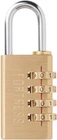 PADLOCK APPLICATION: For indoor use; Small lock is best used for backpacks, duffel bags and sports bags, briefcases and computer bags, jewelry and curio cabinets, and luggage EASE OF USE: Resettable 4 dial combination for keyless convenience, set and reset your combination allowing thousands of personalized combination code options DURABLE DESIGN: Padlock includes a solid metal body in a brushed aluminum finish; Nickel plated steel shackle for cut resistance SPECIFICATIONS: 1-3/16 in. wide lock body; 3/16 in. diameter shackle with 1 in. length, 9/16 in. width Product Description Brass resettable combination luggage lock value priced security for basic applications. 1-3/16-inch (30mm) wide solid brass lock body. Resettable four dial combination. 3/16-inch (5mm). From the Manufacturer Brass resettable combination luggage lock value priced security for basic applications. 1-3/16-Inch (30mm) wide solid brass lock body. Resettable four dial combination. 3/16-Inch (5mm)
