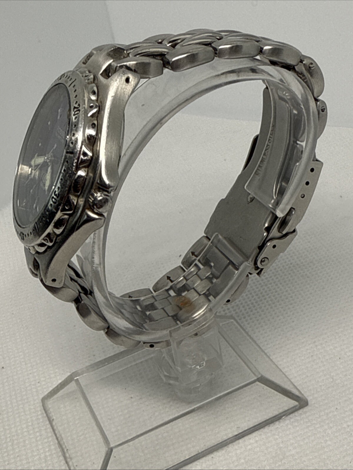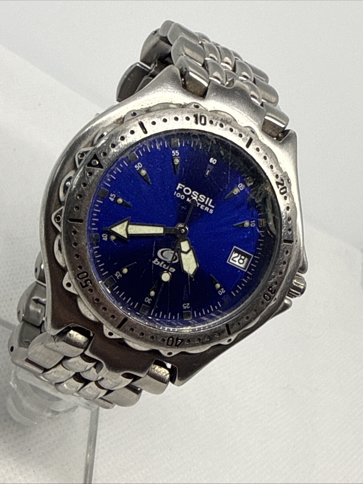 Fossil Blue Men's Watch combines both style and functionality, featuring a blue dial with silver-toned accents and stick indexes. The watch boasts a durable stainless steel case and a two-piece strap that adds a touch of sophistication to any outfit. With a water-resistant feature of up to 50M, this watch is perfect for everyday wear and occasional water activities. Its quartz movement ensures precise timekeeping, while its analog display provides easy reading of time. Ideal for both casual and formal occasions, this Fossil Blue watch is a versatile addition to any wardrobe. This watch is pre owned and is in good condition. Watch works as it should. This watch does have a crack on its crystal, not to sure how deep but please refer to pictures before purchasing. Comes as shown