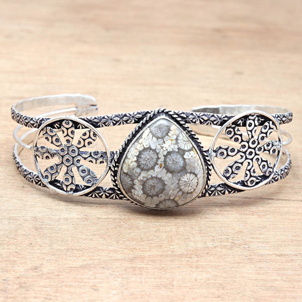 Absolutely love this cuff bracelet! The fossil coral gemstone has a stunning natural pattern, and the antique silver finish gives it a unique vintage charm. It’s adjustable, so it fits perfectly, and the craftsmanship feels solid and high-quality. The perfect statement piece for any outfit—definitely worth it!