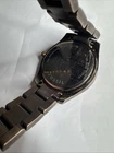 This Fossil ES-3000 Quartz Watch in chocolate brown and rose gold features a sleek rose gold bezel and bracelet with a stainless steel band. The watch has a 30mm round case with a snap caseback and water resistance up to 50m. It is a stylish and versatile timepiece suitable for both formal and casual occasions, with a classic design that includes a date indicator and rhinestone ring. Made in the United States, this watch exudes a sophisticated and timeless appeal, perfect for women looking for a chic accessory.