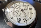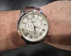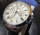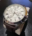 Very classic watch design Manufacturer Fossil (model Grant) Case Shape Round Stainless Steel Case / Cream Dial / Brown Leather Strap ( very supple and comfortable to wear ) Dial Color Cream Band Color Brown Date Yes Movement Quartz Crystal/Glass Scratch Resistant Mineral Strap / Bracelet Leather Clasp Type Strap Buckle Case Diameter 44 mm Case Thickness 12 mm Water Resistance 5 ATM / 50 MT / 165 FEET Special Features Chronograph / Multiple Sub Dials Line / Platform Grant Please see all photos as they are part of the description ( will require new batteries )