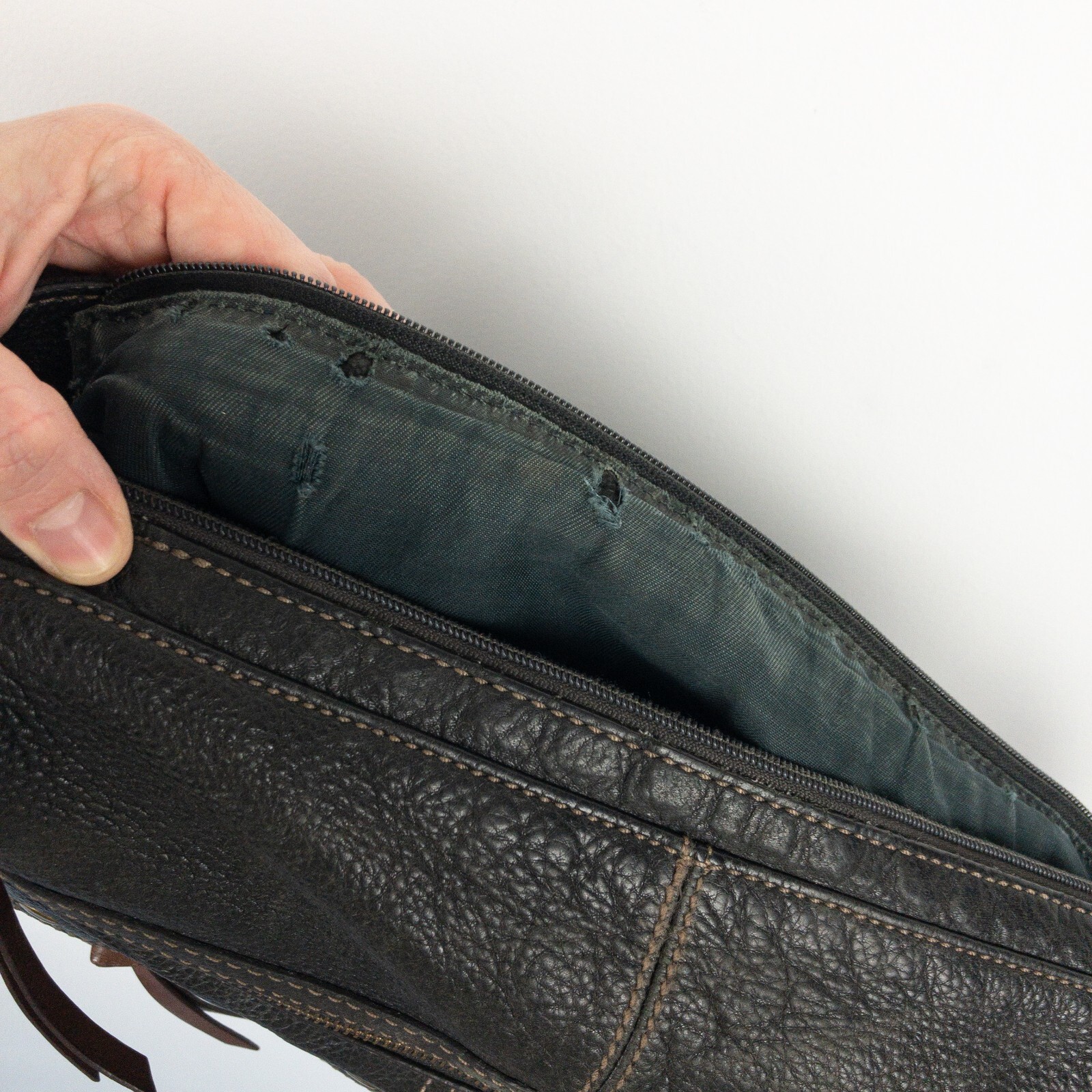 Fossil Purse 11" x 2.5" x 11" Leather - Multiple Pockets - Morgan Traveler Fair pre-owned condition Wear on zipper pull/buttons; wear through inside; wear on back leather We ship items Monday - Saturday within one day of payment. Any questions? Feel free to ask!