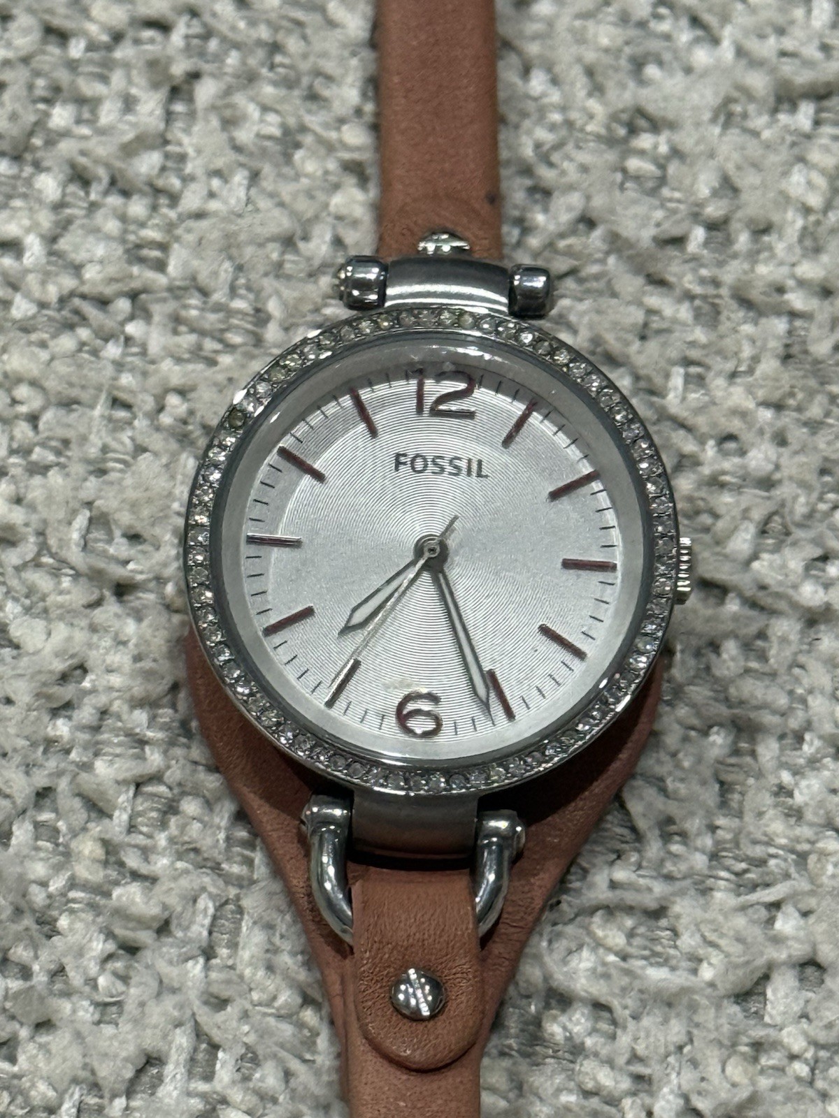Fossil Women's Georgia Pink Leather Strap Watch. Condition is Pre-owned - Good. Shipped with USPS Ground Advantage.
