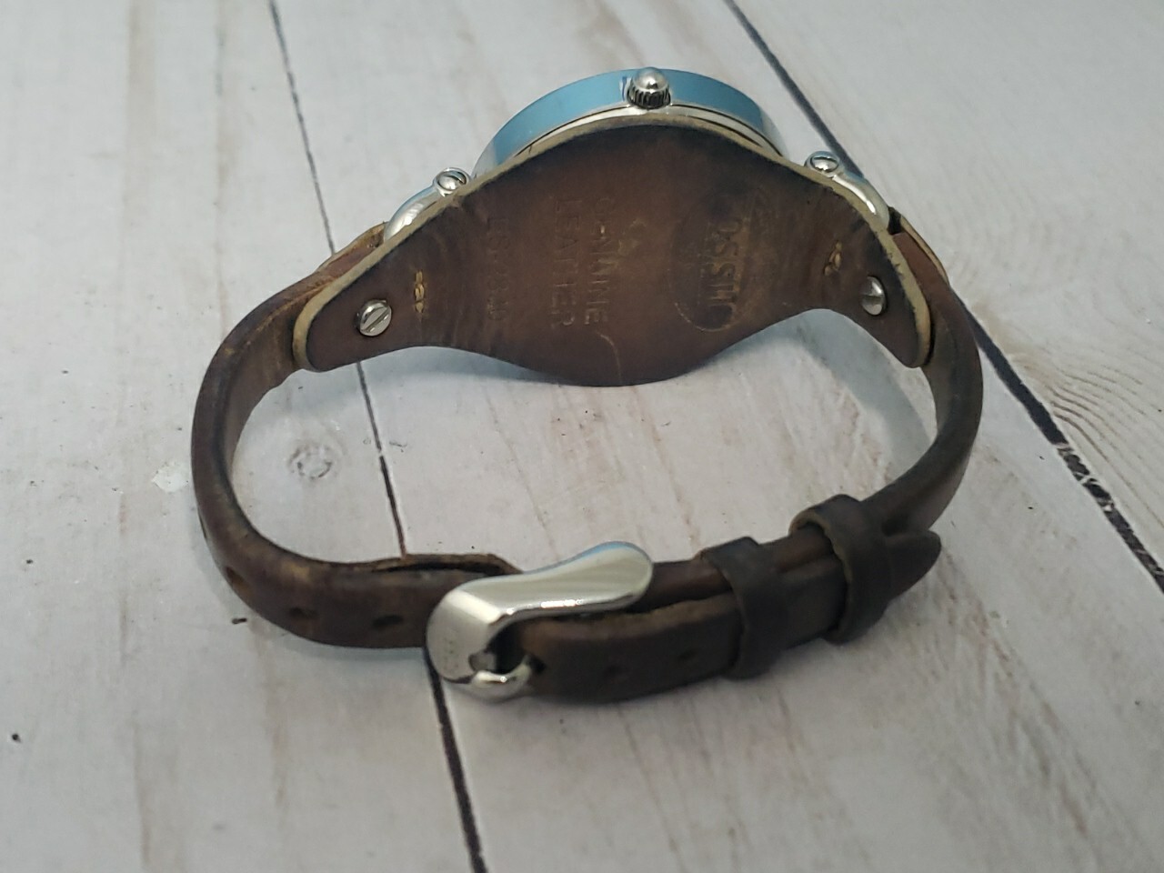 Fossil Women’s Watch Genuine Leather Band Ladies Wristwatch - NOT Working Condition: needs a new battery, not working, leather brand has issues, see actual pics for condition