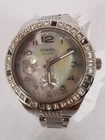 Fossil Womens Watch BQ-9360 Silver Crystals Round Mother Of Pearl Needs Battery This Fossil Watch is in need of a new battery and is missing several crystals in the frame.