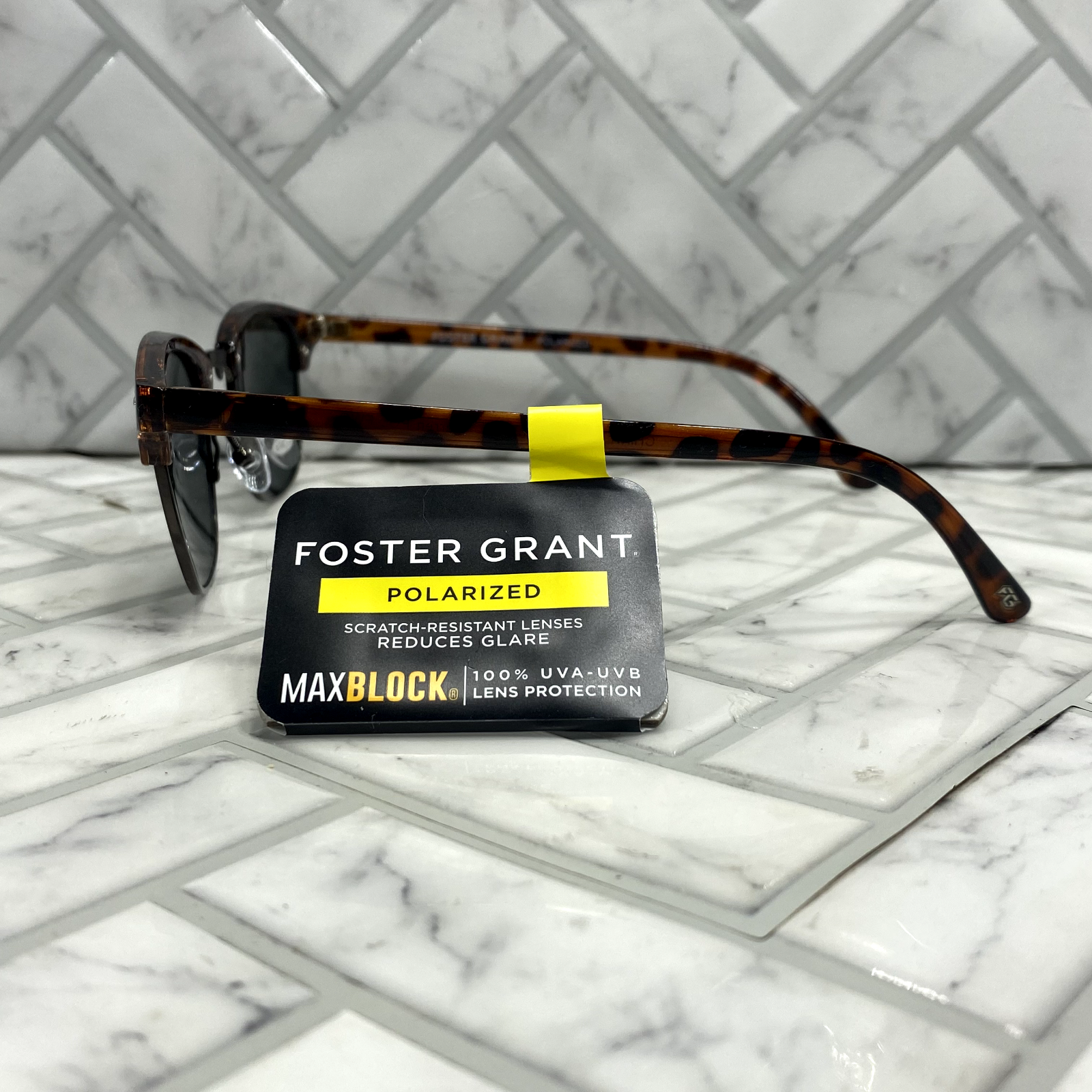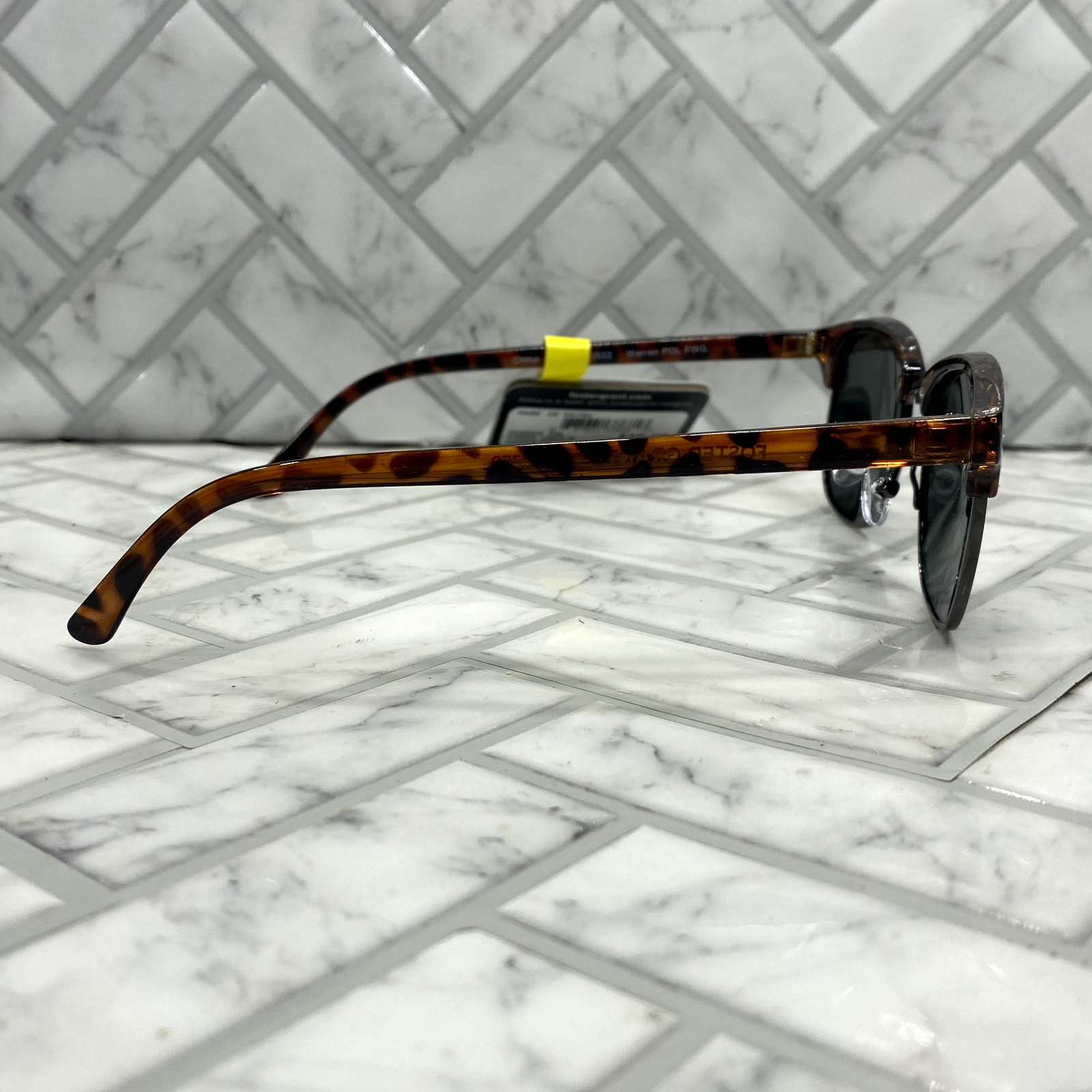 NWT Foster Grant Sunglasses WARREN POL Tortoise Frames Polarized These Foster Grant sunglasses feature tortoise shell frames with polarized black lenses. They provide 100% UVA-UVB protection, are tinted, scratch & impact resistant, and lightweight. The model is WARREN POL, suitable for unisex adults, and designed with a beach and classic theme. The frame is made of plastic and metal, while the lenses are made of plastic. Ideal for those seeking a stylish and functional accessory for sunny days.