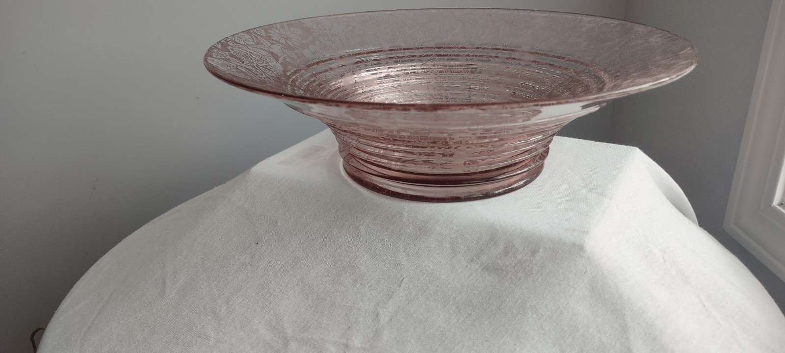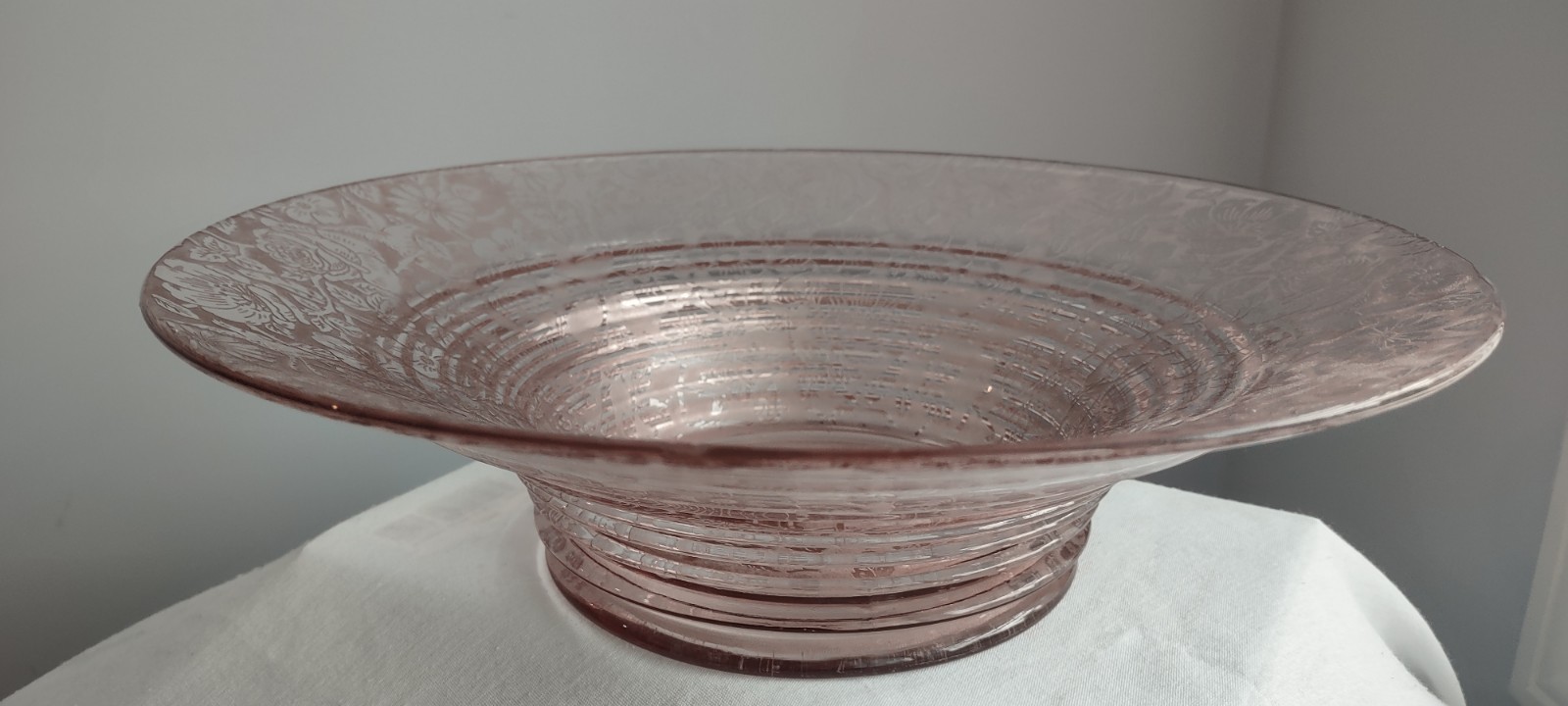 This is a Beautiful Vintage Fostotia Brocade #2362 Orchid Saturn rings Bowl dish. The measurements are approx 12.5. Inches in diamenter and 3.5 inches tall. Excellent Vintage Condition. No Chips, No Cracks. Smoke Free Home.