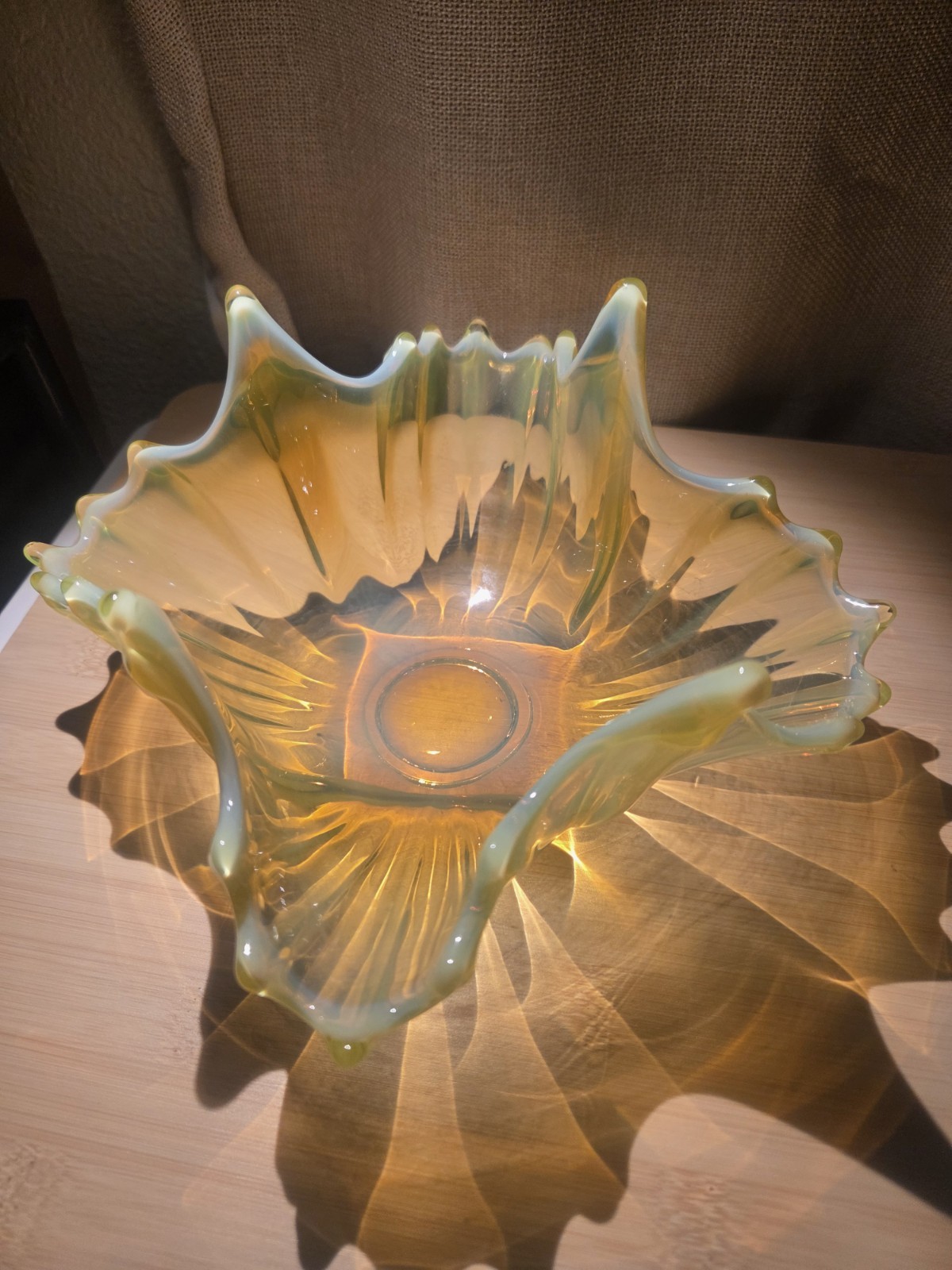 $ 52.8Northwood Alaska Vaseline Uranium Opalescent Glass Berry Bowl Vintage Yellow