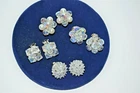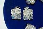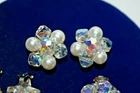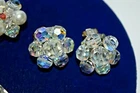 We are pleased to offer Four Pair Crystal Aurora Borealis Beaded Clip Earrings; "Pearl" Pair Marked Japan. Largest measures 1" in diameter. **Please note: Some jewelry items are photographed on a mirror. You may see a reflection. Please inspect each photo carefully.
