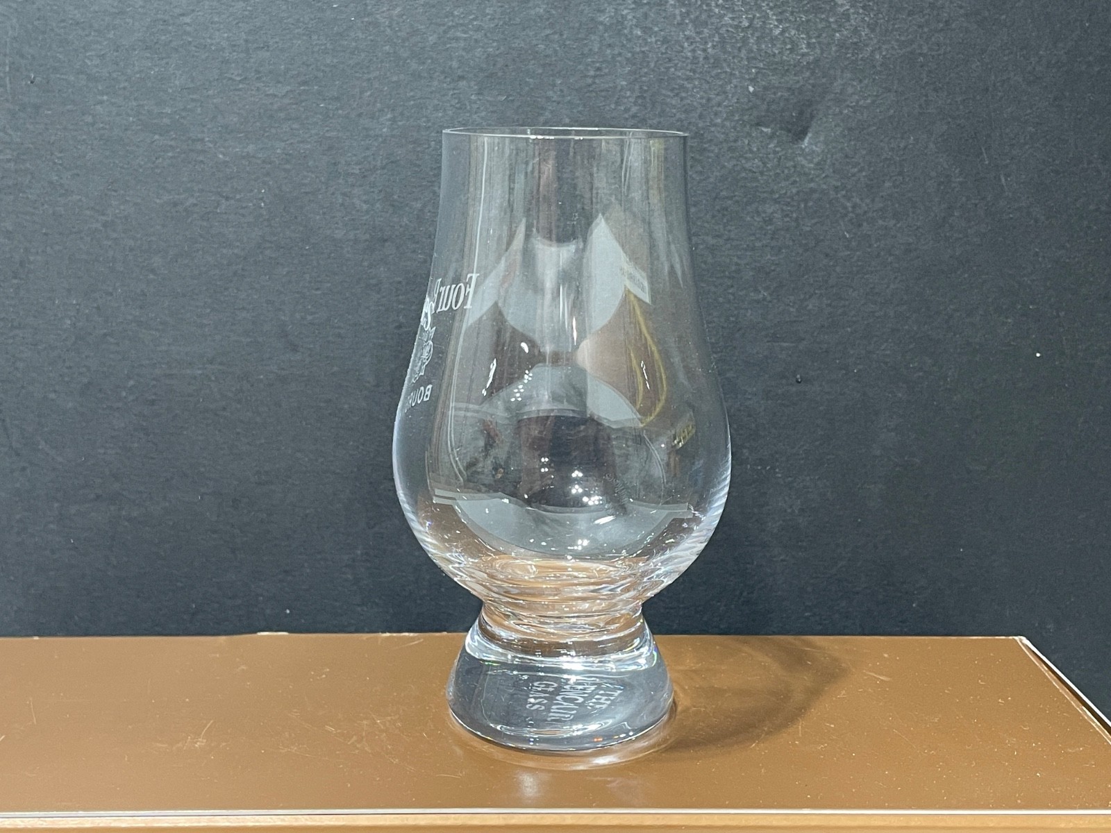 For sale is an excellent condition etched Four Roses Bourbon whiskey Glencairn crystal taster glass that measures approximately 4 5/8" tall and 1 3/4" wide across the top. Glass ships using USPS Ground Advantage or UPS Ground.