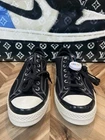 The Fragment Design x MONCLER x Converse Chuck 70 Low “Black” in Men’s Size 11.5 is a limited edition sneaker collaboration featuring iconic designer brands such as Moncler, Prada, Gucci, and more. This low-top silhouette combines comfort and breathability, making it ideal for both activewear and casual occasions. The black colorway and designer theme make it a coveted piece for fans of streetwear and luxury footwear, adding a touch of prestige to any outfit. Crafted with canvas upper material and a standard shoe width, this sneaker is a must-have for any sneaker enthusiast looking for exclusivity and style.