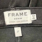 Frame Denim 'Le Garcon' Lamb Leather Cropped Pants Black Size 27 Approx measurements garment laying flat Waist 15 inches Rise 8.5 inches Inseam 25.5 inches Leg opening 4.5 inches Great pre owned condition! These slouchy FRAME leather pants gain lived-in charm from a supple, wrinkled exterior. 5-pocket styling. Single-button closure and zip fly. Belt loops. Black color. Fabric: Leather. •Imperfections- Back pocket stitching is coming undone(see last pic) •No Returns No Holds No Trades