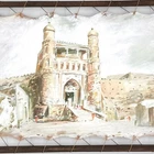 Framed Leather Surface Fine Art Oil Painting Historical Islamic World Monument